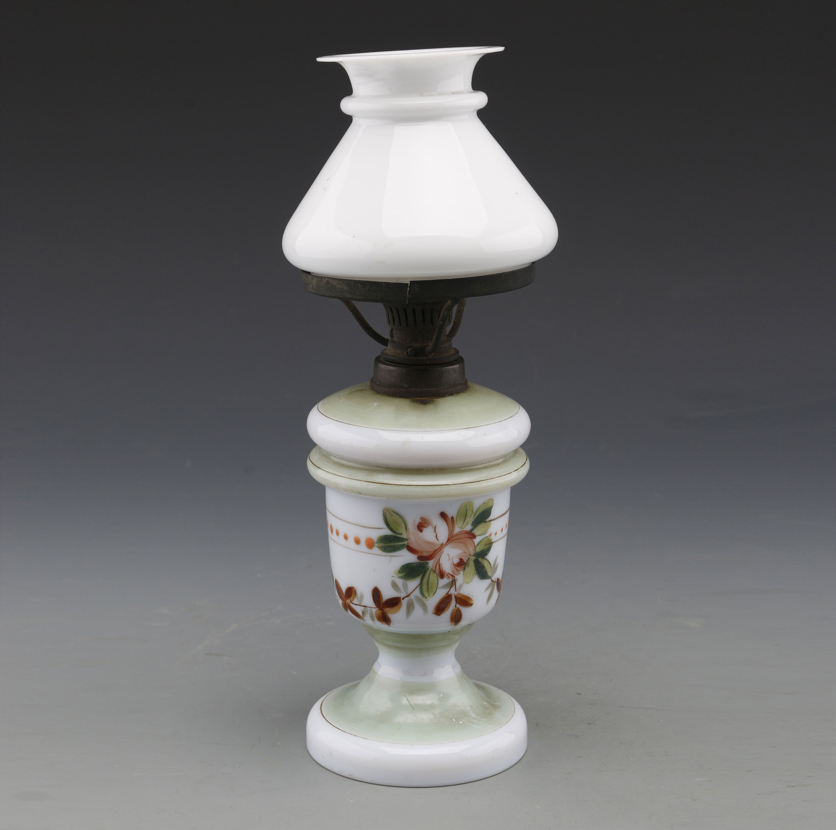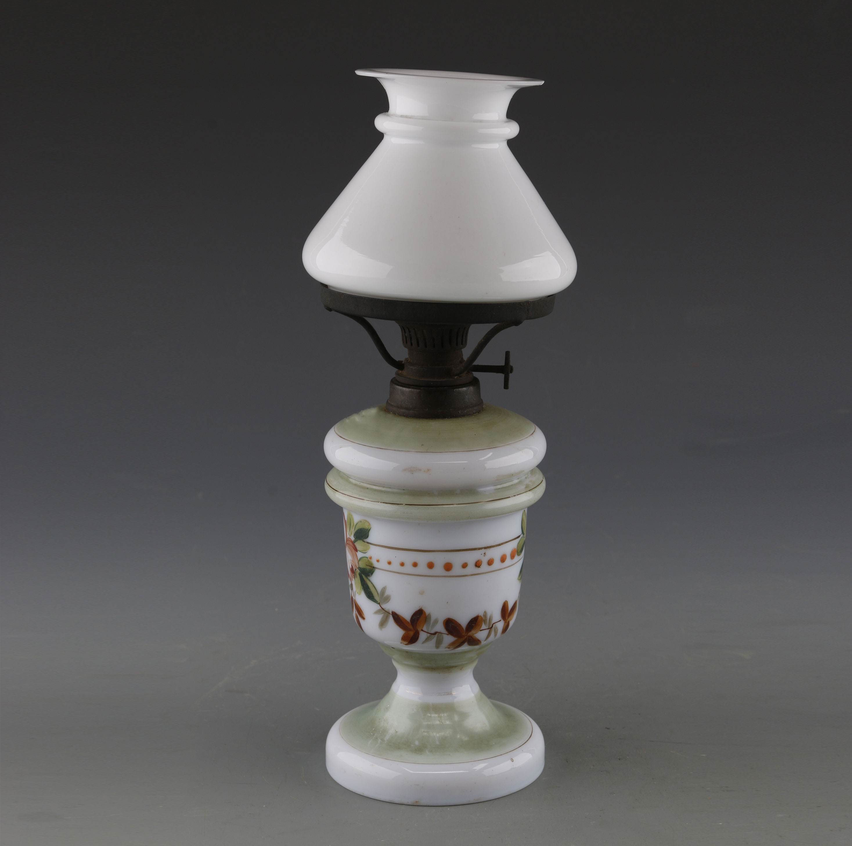 白釉花卉纹瓷座煤油灯(连玻璃罩)