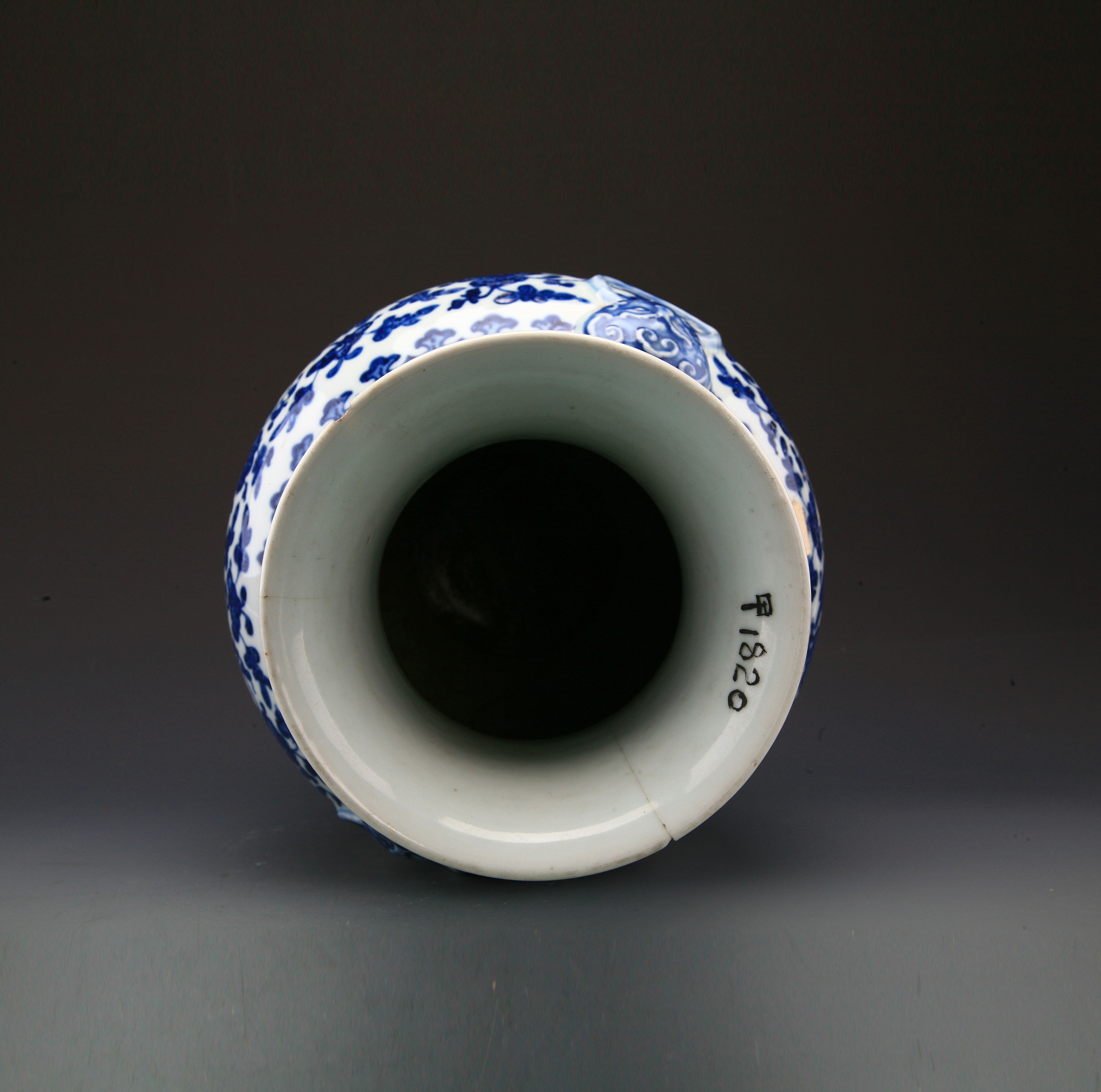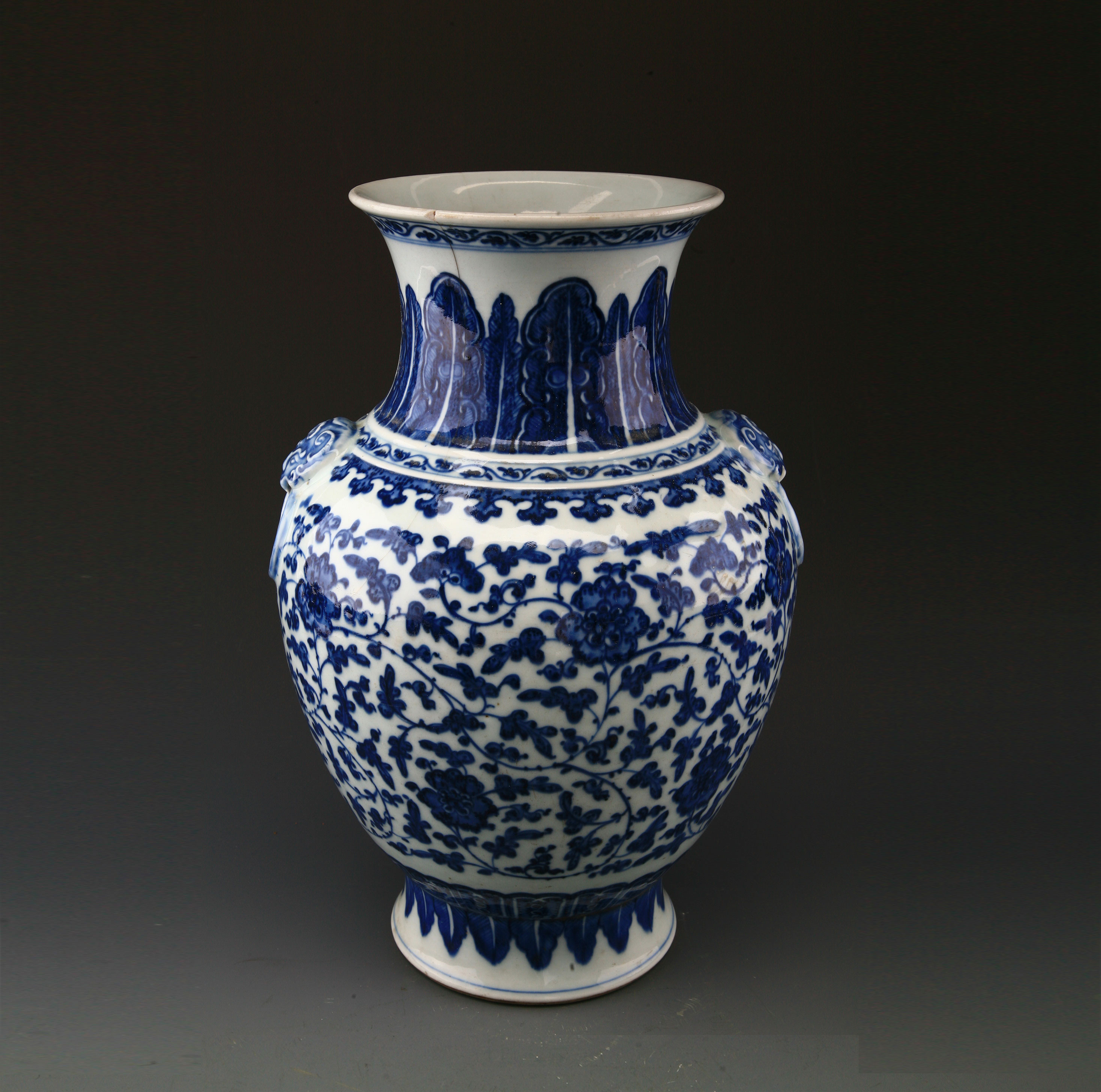 青花蕉叶勾莲纹双铺首兽耳瓶