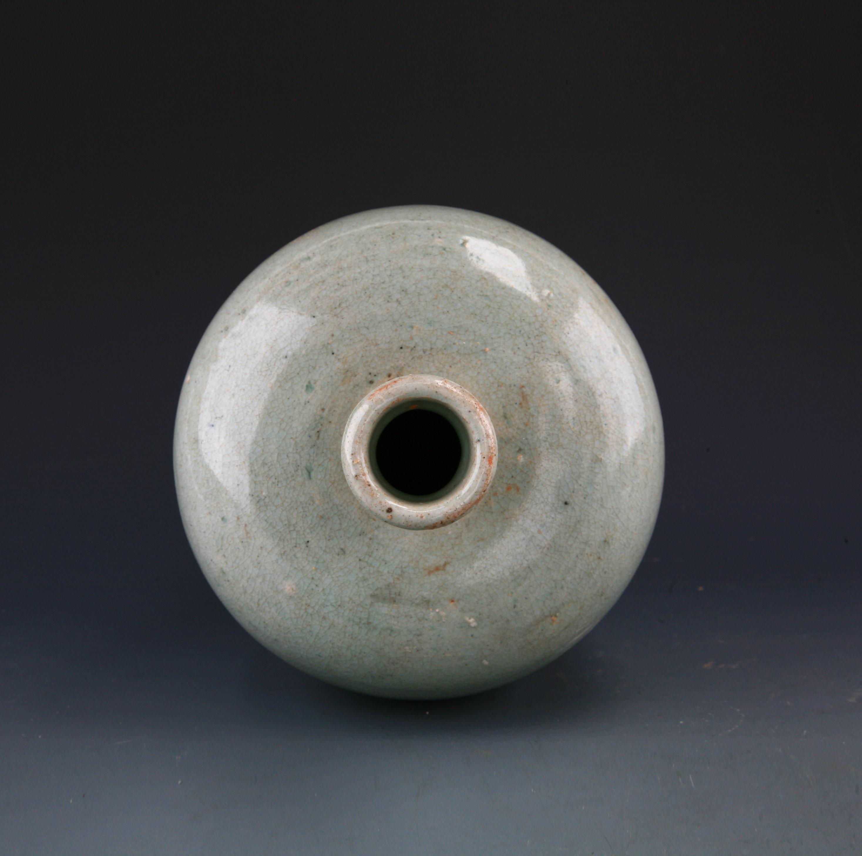 年代:元 ;尺寸:通宽17.5cm,高31cm。小口,细短颈,丰肩,深腹渐收,假圈足略外撇,底露胎。覆杯形顶盖。器身施青白釉,釉色莹润明亮,釉面开冰裂纹。