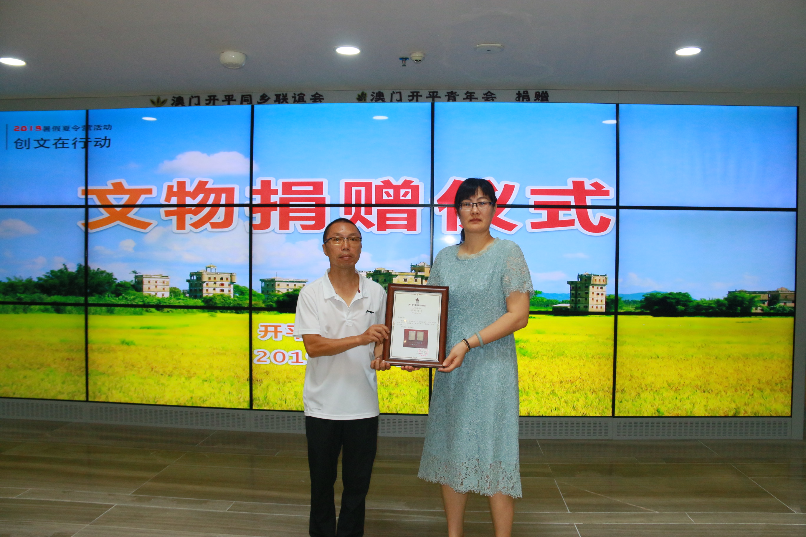另讯,在此次培训班过程中,授课老师胡新雨除了给学员们授课外,还向开平市博物馆捐赠文物,包括“大清铜币”“光绪元宝”“民国双毫”等钱币12个,中华民国翻印“康熙字典”(第贰本、第叁本)2本。