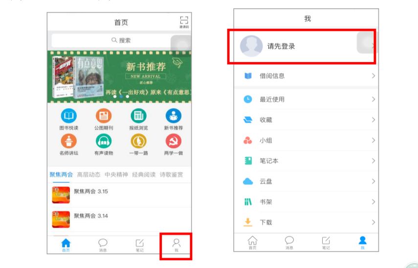 打开移动图书馆公图版 APP,进行首页。点击右下角的【我】进入登录页面。