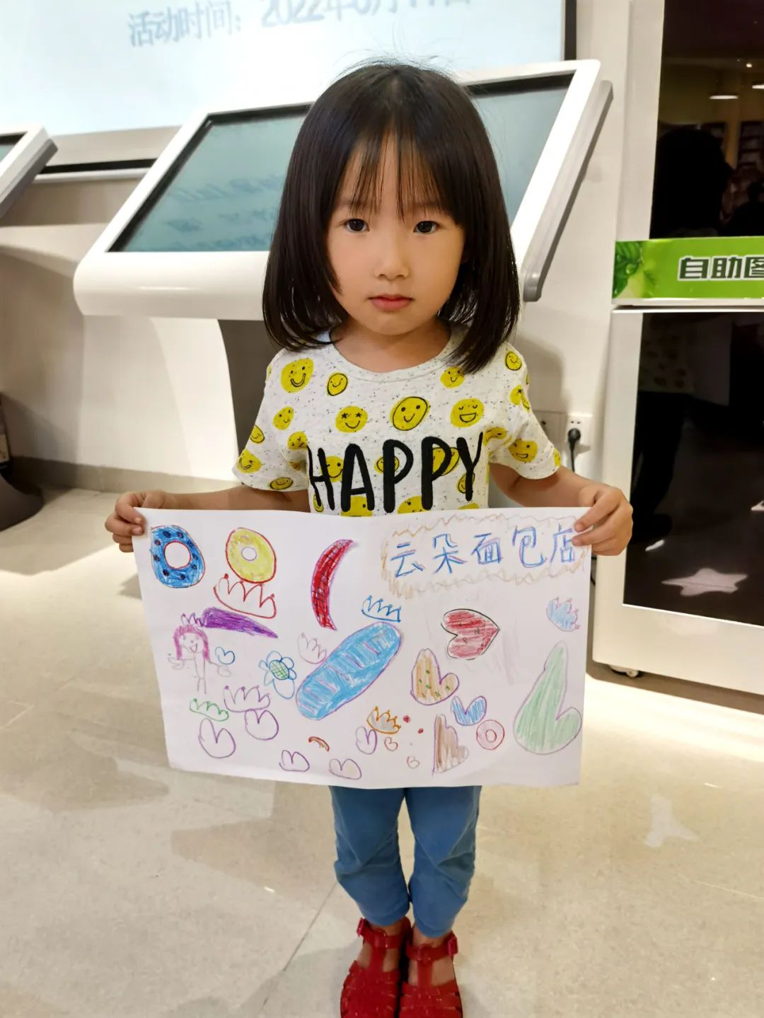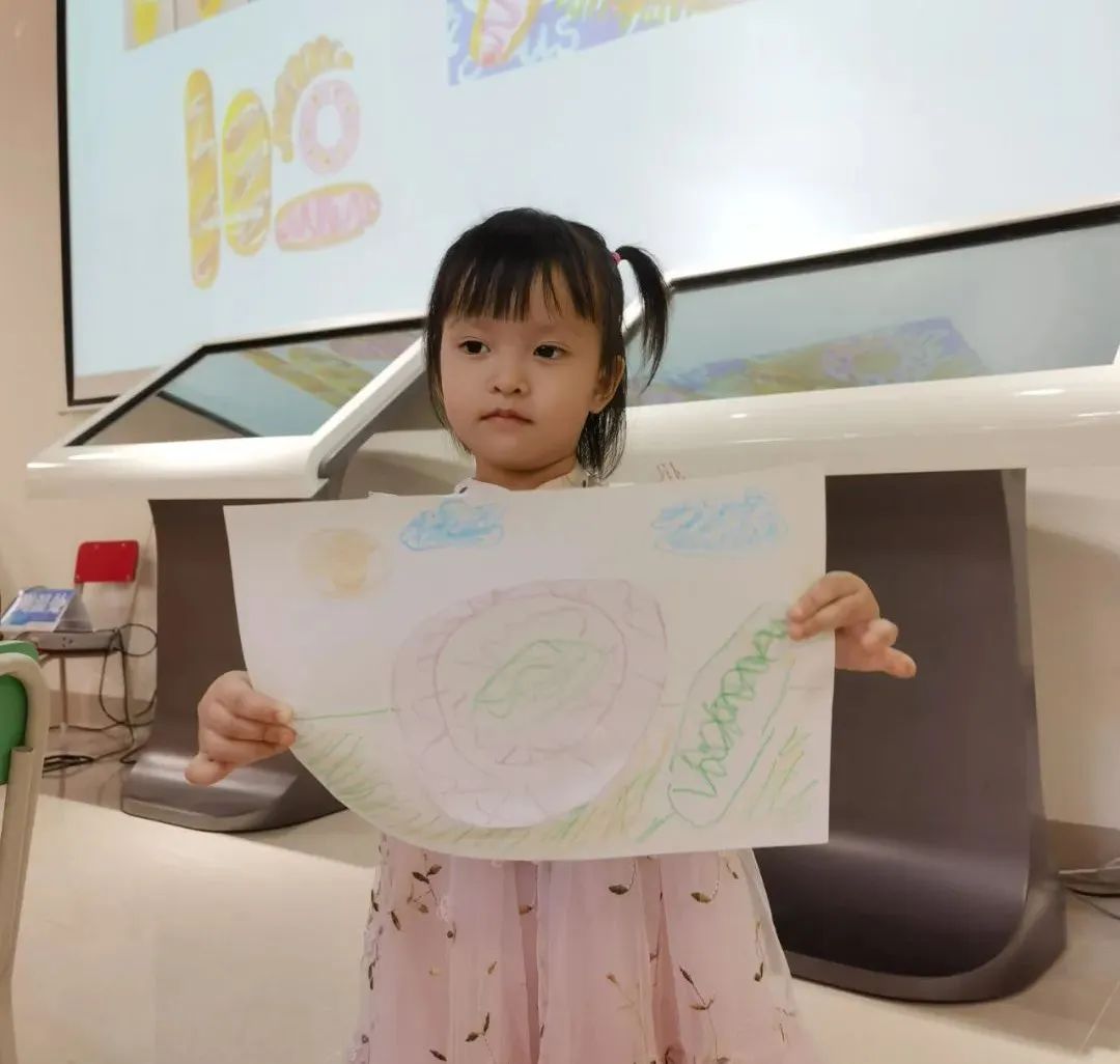 随后,叮叮老师在周末剧场|奇妙故事会环节,给小朋友们讲述了《云朵面包》的故事。不是每个孩子都可以从树上摘下云朵,不是每个妈妈都能将云朵加糖发酵,也不是每个爸爸都可以在装豆芽一样的盒子车上吃到云朵早餐。可是可是啊,就是那么一点点,一点点从天而降的想象,生活就像云朵一样轻盈地飘了起来,飞过城市的上空,小心翼翼而惊喜非常。
