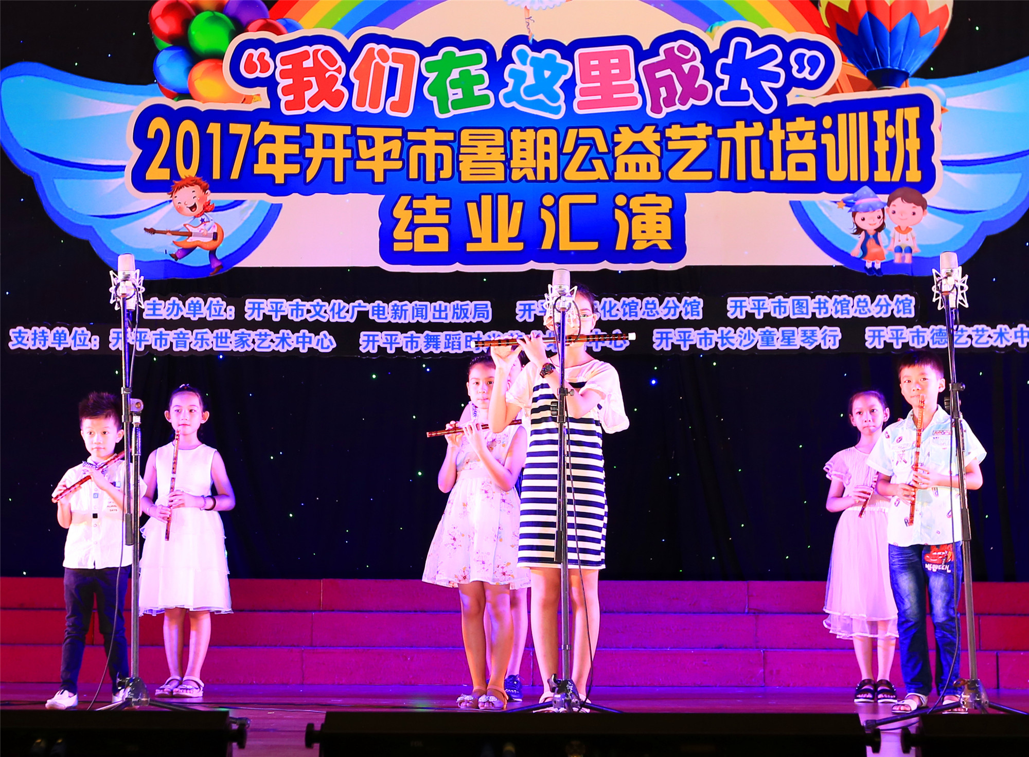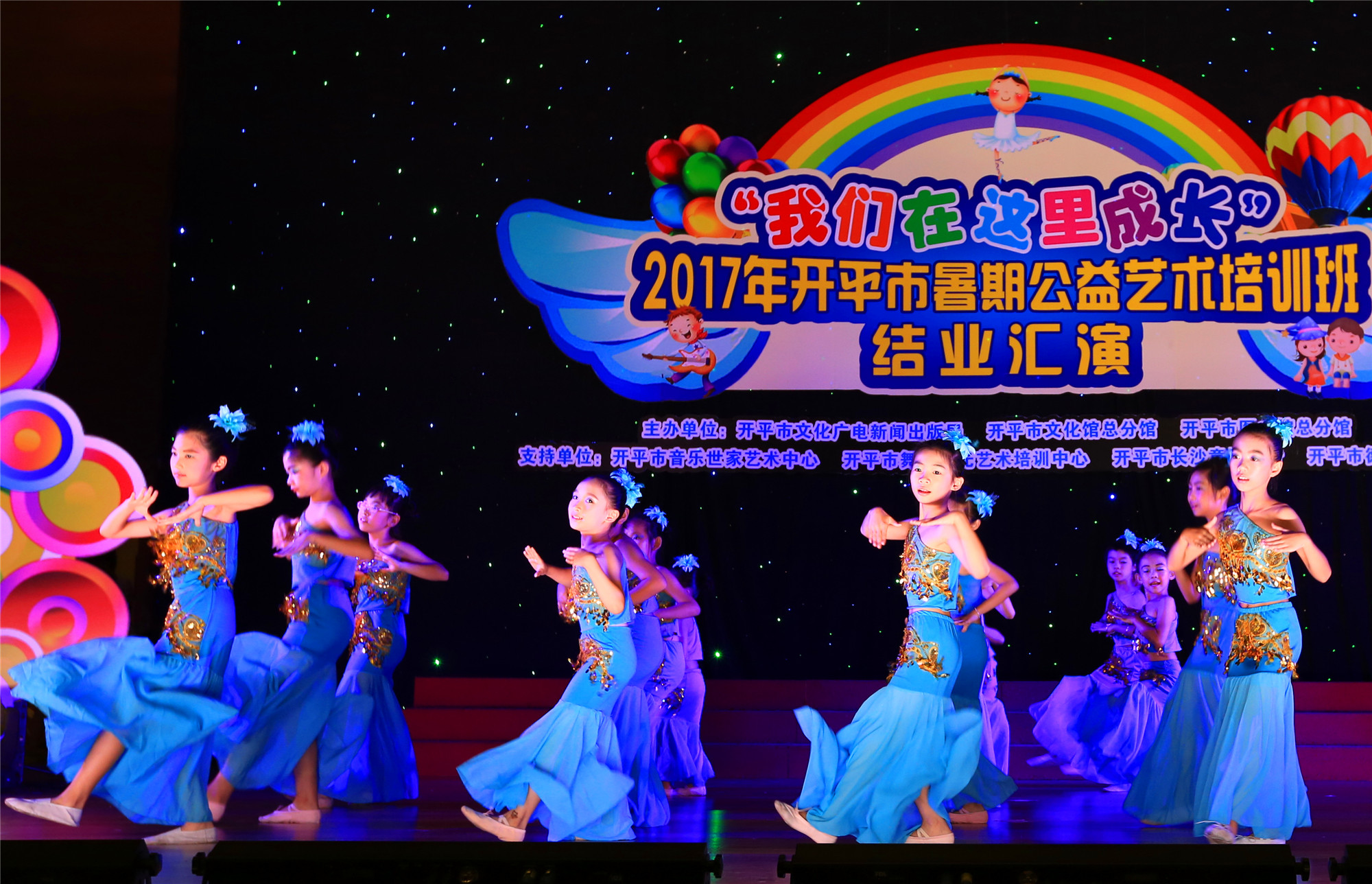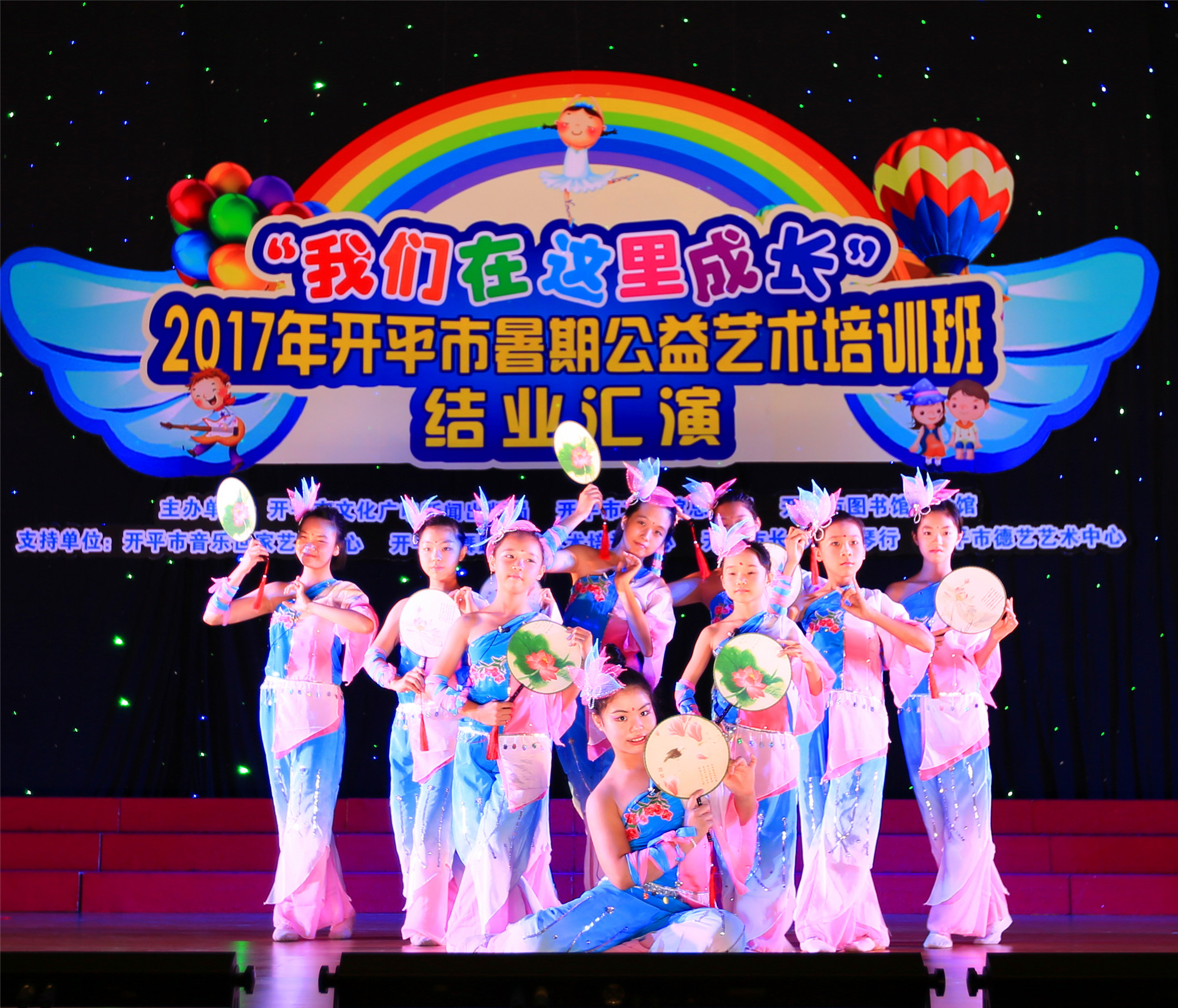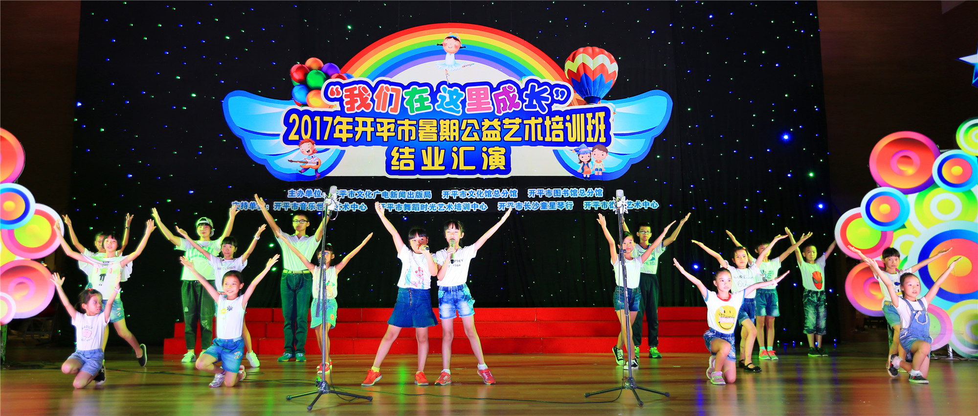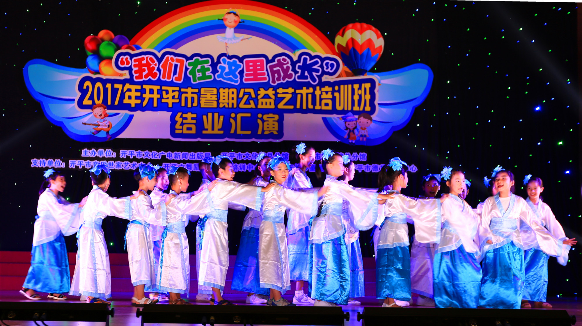 7月28日晚,历时两周的“我们在这里成长”2017暑期公益艺术培训班在市青少宫小剧场上演。中国舞蹈、语言艺术表演、茶艺、粤剧、武术、小歌手、合唱、乐器……学员们以精彩的表演向老师和家长汇报成果,为培训班画上完美的句号。