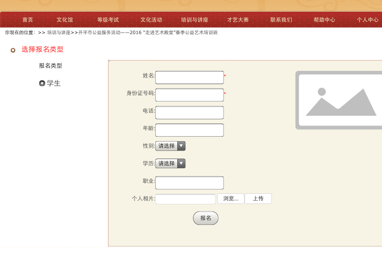 1、文化馆:登录“开平市文化馆”官方网站: www.kpwhg.com 点击进入此活动报名界面直接报名;