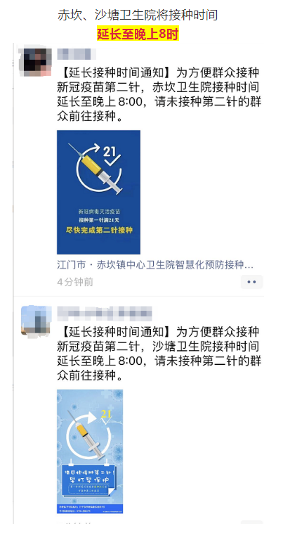 重要通知 广大市民: 根据上级工作安排,我市将在6月底前完成本阶段新冠疫苗第二剂次接种任务,清库清零。请已接种第一针满21天的广大市民迅速到原接种点接种第二针。7月1日后新冠疫苗接种工作安排将会有调整。 为了确保已接种第一针满21天的广大市民能在6月底前完成接种第二针,实施错峰接种,避免高峰期扎堆排队,我市各疫苗接种点将向第一针次疫苗接种已满21天的市民群众发出提醒信息,收到信息的可在2天内免预约到该接种点接种。同时,也可以在每天晚上7点通过粤苗APP、粤健通微信小程序进行预约接种。 开平市卫生健康局 2021年6月24日 @广大市民,请知悉 第一针尚未产生足够免疫保护 要完成第二针后14天 才能在体内产生很好的中和抗体 如您已接种第一针新冠灭活疫苗 超满21天 请迅速接种第二针以达到保护效果 开平市预防接种单位信息