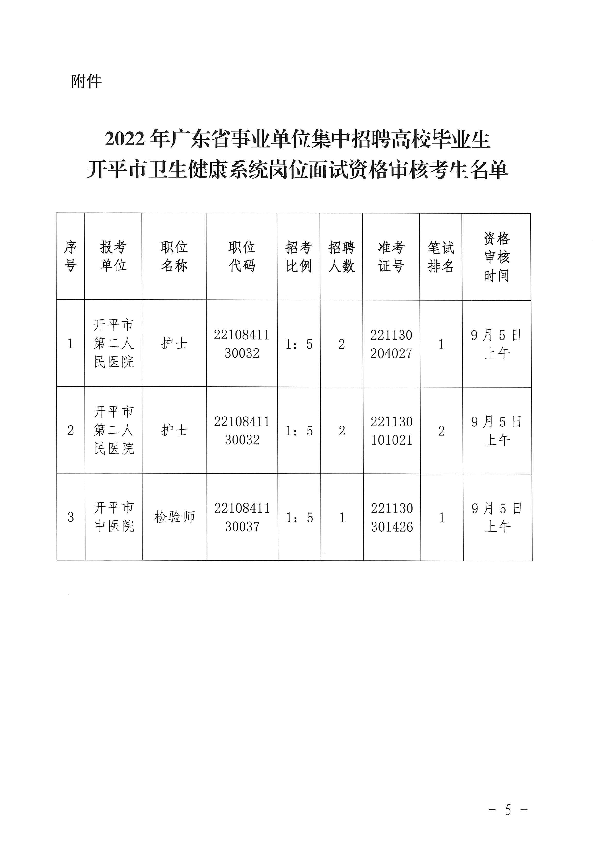 2022年广东省事业单位集中招聘高校毕业生开平市卫生健康系统岗位笔试合格分数线划定及资格审核公告
