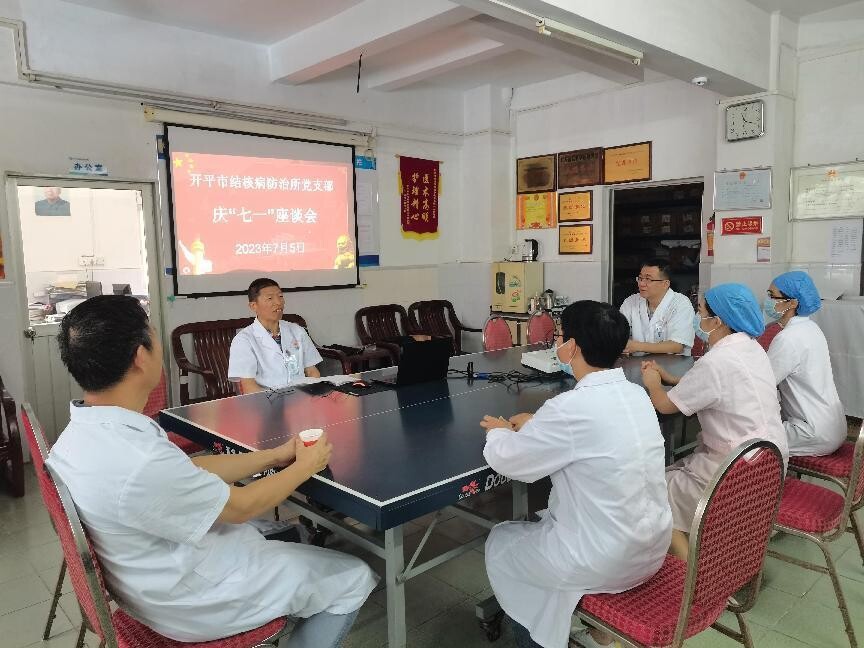 今年是中国共产党成立102周年,在七一建党节之际,开平市结核病防治所召开了党支部“庆七一”座谈会,庆祝党的生日。 会上,回顾了党的光辉历程,讴歌党的丰功伟绩,展望新的伟大征程,表彰先进优秀典型,动员党员干部,从党的辉煌历史中汲取前进力量,进一步弘扬伟大建党精神,永葆初心、奋勇前行。党员们结合各自实际,表示不忘初心、牢记使命,继续奋勇前进,积极投身医疗卫生事业,以最坚定、最自觉、最实在的行动向党的生日献礼。 会上,全体党员重温了入党誓词,重温入党初心,同时也督促自己作为共产党员要带头忠诚拥护“两个确立”、坚决做到“两个维护”,在践行“两个维护”中淬炼,在深化理论学习中修炼,在应对风险考验中锤炼,在锻造政治忠诚上树标杆;要带头发挥先锋模范作用,带头发扬优良作风、密切联系群众之风、求真务实之风、艰苦奋斗之风、批评与自我批评之风、用党的光荣传统和优良作风坚定信念、凝聚力量,用党的实践和历史经验启迪智慧、砥砺品格,贯彻落实党中央、省委部署和市委、市政府的工作要求,埋头苦干,勇敢前行。