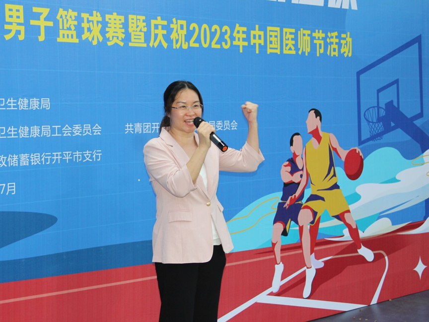 “学习党的二十大 ‘医’心向健康” 开平市卫生健康系统2023年“卫生健康杯”男子篮球赛开幕 7月24日,2023年开平市卫健系统庆8.19中国医师节 “卫生健康杯”男子篮球赛开幕式在开平市中医院(港口分院)举行。市卫生健康局党组成员、副局长杨惠俊致开幕词并主持揭幕战跳球仪式,副市长梁健芬出席开幕式并宣布开幕。 此次比赛由开平市卫生健康局主办,开平市卫生健康局工会委员会、共青团开平市卫生健康局委员会承办,中国邮政储蓄银行开平市支行赞助,得到了全市卫健系统各医疗卫生单位干部职工的积极响应。比赛共有13个参赛代表队,经抽签分为A、B、C、D四组,设立种子队,小组赛采取分组循环方式,小组头两名出线进入第二阶段。第二阶段A、B、C、D小组第一分别同A、B、C、D小组第二名交叉进行淘汰赛,决出四强,经半决赛、总决赛决出1-4名。全部共20场比赛。 举办本次“卫生健康杯”男子篮球赛是开平市卫生健康系统贯彻落实党的二十大精神和创建全国文明城市工作的重要举措,是活跃全市卫生健康系统广大职工文化生活、倡导全民健身运动的需要,也是对全市卫生健康系统干部职工身体素质、精神风貌的一次检阅。 揭幕战由卫健三院联队对阵马冈苍城联队,赛场上,双方队员个个激情高昂,上演了一场扣人心弦的攻防较量,将比赛气氛不断推向高潮。巧妙的传球、华丽的转身、精准的投篮等精彩瞬间展示了队员们过硬的球技,精妙的配合展示了团结协作、勇于拼搏的精神风貌,引来观众阵阵欢呼。 据悉,此次比赛经过前期的精心筹备,选在“8.19”中国医师节前举办,旨在三年“战疫”之后进一步丰富全市卫健系统干部职工文体活动,构建健康、文明的文化氛围,增强卫健事业的向心力和凝聚力,让广大干部职工以良好的精神状态和实干的拼搏姿态推进卫健事业高质量发展,不断为开平市争创“百县千镇万村高质量发展工程”示范县贡献卫健力量。