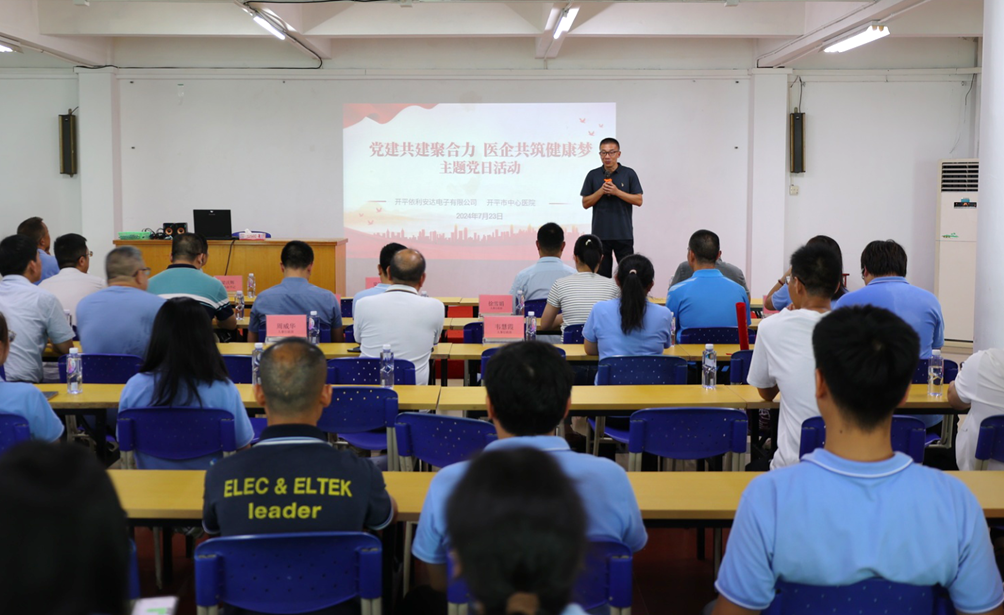 为深入学习贯彻习近平新时代中国特色社会主义思想和党的二十大精神,积极探索新时代公立医院基层党建工作新内涵,进一步深化党建共建、优势互补、资源共享、共同发展的具体实践,为健康开平保驾护航,7月24日开平市中心医院联合开平依利安达电子有限公司开展“党建共建聚合力,医企共筑健康梦”主题党日活动。 在依利安达公司领导的引导下,开平市中心医院党委书记梁坚忠,党委副书记梁沃辉,党委委员、副院长周伟勇等一行党员干部走进开平依利安达电子有限公司的生产车间与党群服务中心,了解公司的生产经营、企业文化、党建工作情况,以期为未来的科普宣传工作积累宝贵的实践基础。梁坚忠书记对开平依利安达公司的党建工作给予了高度评价,并表达了通过党建共建增强双方合力,实现医企共同筑就健康梦想的期许。 四位不同专科的主任分别围绕《健康生活,从心做起》《颈椎病康复》《认识糖尿病》《前列腺增生科普》专题,通过PPT的形式进行了深入而全面的讲解。他们结合丰富的临床病例,以严谨、稳重的态度,对各个专题进行了理性的分析和解读,使得讲座内容既具有专业性,又易于理解。“专家们把科普送到了一线,让我们感受到了医院服务的温度,听了专家的讲解,学到了不少新知识,也明确了之前的一些错误认识……”参与听课的职工表示收获挺大的,并表示会将所学到的干货知识分享给身边的亲朋好友,共同提升健康素养。 结合依利安达公司的需求,开平市中心医院组织了包括呼吸内科、康复科、骨科、泌尿外科、内分泌科、妇科、儿科在内的多个专科的学科带头人或主任,在党群服务中心开展了健康咨询活动。他们对员工的健康疑虑逐一进行了专业解答,并根据每位员工的身体状况,提供了个性化的起居饮食及保健养生建议。同时,针对有需求的员工,按照中医辨证还开具了中药处方以协助调理身体。本次活动吸引了共计约50名员工参与健康咨询,充分展现了医院对员工健康的深切关怀与专业支持。 “医心向党,守护健康”深刻彰显了开平市中心医院对人民群众健康福祉的坚定承诺与不懈追求。通过这次“党建共建聚合力,医企共筑健康梦”主题党日活动,采取结对共建的形式,实现了医疗与企业的有效融合。此次活动不仅将优质的医疗资源精准地输送到企业生产一线,更为医企之间的长期、便捷合作打下了坚实基础。开平市中心医院将致力于深化合作层次,将“健康”的种子播撒在每一处角落,为保障侨乡高质量发展提供有力支撑。