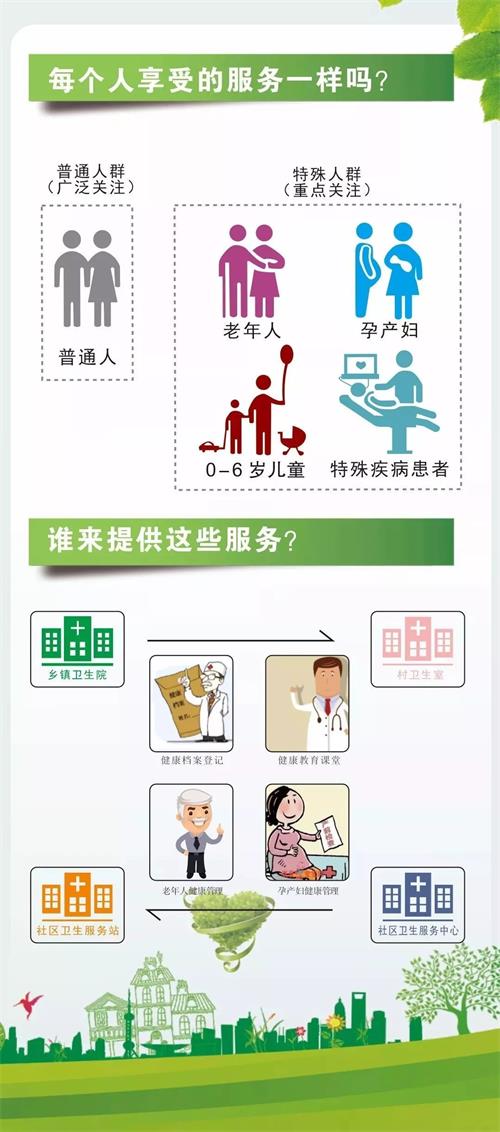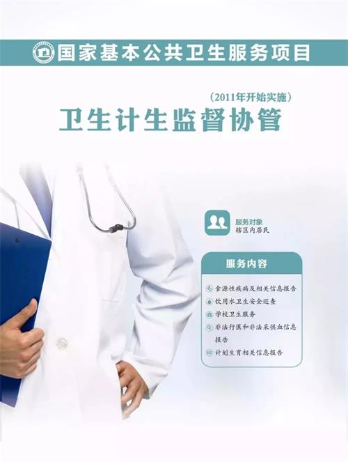 信息来源:国家卫生健康委员会 爸爸妈妈去社区做体检、宝宝按时打预防针......都是我们生活中习以为常的事情。 但是你知道吗?其实这些都是国家基本公共卫生服务项目! 从出生开始国家基本公共卫生服务项目就始终在给予我们保障,传递关爱的同时TA还能让你免费享受周到的服务呢! 那么,基本公共卫生服务项目具体有哪些呢? 1、居民健康档案 2、健康教育服务 3、预防接种服务 4、儿童健康管理服务 5、孕产妇健康管理服务 6、老年人健康管理服务 7、慢性病患者健康管理(高血压、2型糖尿病) 8、严重精神障碍患者管理 9、传染病及突发公共卫生事件报告和处理服务 10、卫生计生监督协管服务 11、中医药健康管理服务 12、结核病患者健康管理服务 2019年国家基本公共卫生服务项目又新划入了19项哦!
