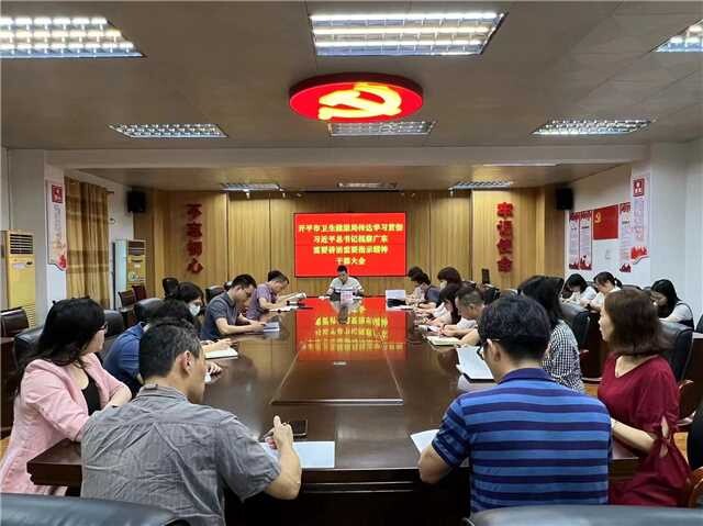 4月24日,市卫生健康局召开党组(扩大)会议,传达学习习近平总书记视察广东重要讲话、重要指示精神。市卫生健康局党组成员、副局长杨惠俊主持会议。市卫生健康局各分管领导、各股室负责同志参会。 会议强调,卫生健康系统要深刻铭记总书记对广东人民的关心关爱、对广东工作的勉励指导,深刻认识习近平总书记视察广东重要讲话、重要指示的重大意义,深刻领会习近平总书记视察广东重要讲话、重要指示的丰富内涵和实践要求,深刻领会总书记对广东作出的新定位,以更为艰辛的探索、更加艰苦的努力,坚决完成好在推进中国式现代化建设中走在前列的使命任务。 会议要求,要把学习宣传贯彻工作摆上重要位置,推动学习宣传贯彻工作不断往深里走、往实里走。一是要领导带头示范学。二是要基层组织分类学。三是要宣传引导深入学。四是要调查研究实践学。以学促干有力有序推动各项任务落地落实。 会议强调,贯彻落实习近平总书记的重要讲话、重要指示精神,要以政治建设为统领,不断提高党的建设质量,为全面推进卫生健康高质量发展提供引领和保障。一是要坚持党的全面领导。二是要认真开好主题教育。三是要加强干部队伍和基层党组织建设。四是要深入推进党风廉政建设和反腐败斗争。 会议强调,要坚定不移贯彻新发展理念,坚定不移推动卫生健康高质量发展。一是要坚持以人民为中心的发展思想,尽力而为、量力而行,积极办好民生实事,推进健康开平建设。二是要聚焦高质量发展目标。三是要聚焦疫情防控新阶段要求。四是要聚焦重点民生工作任务。