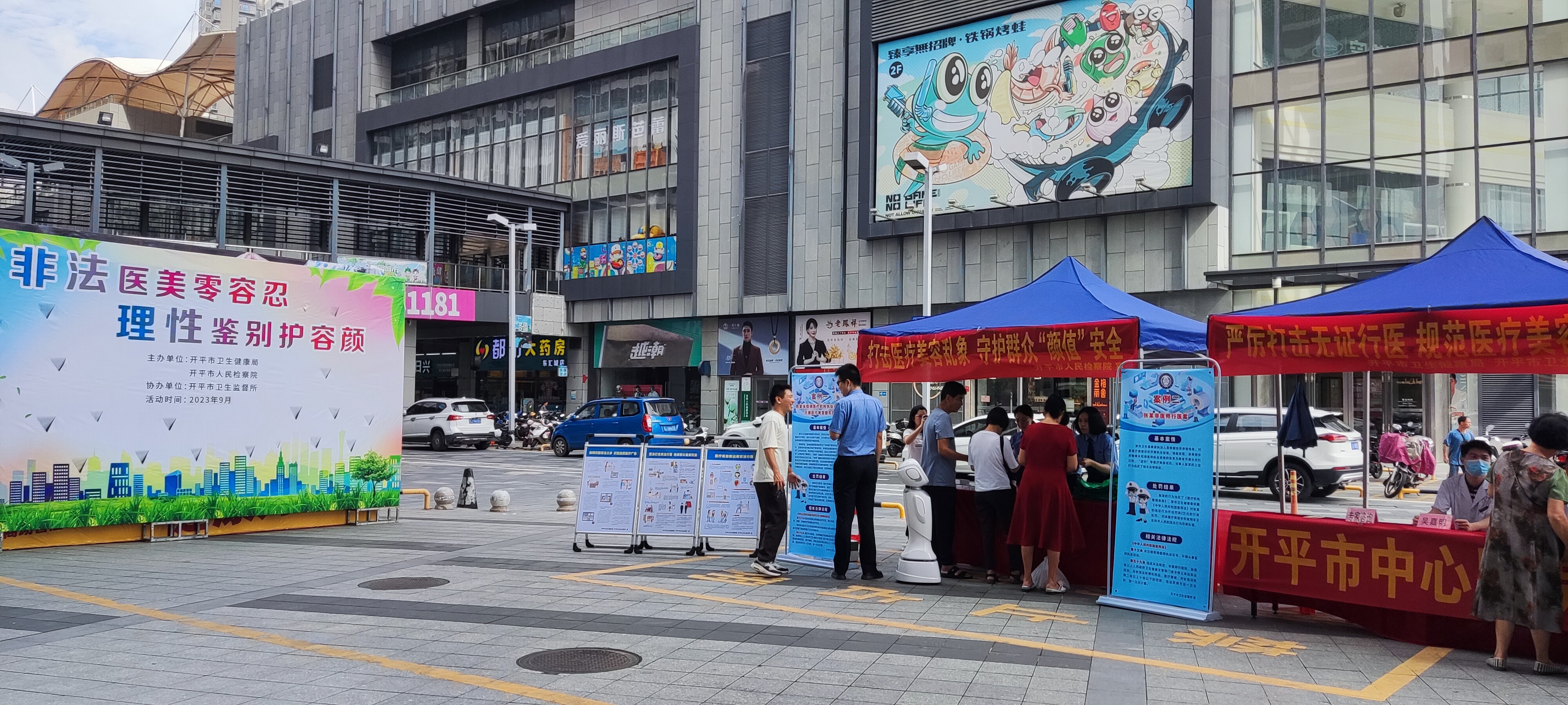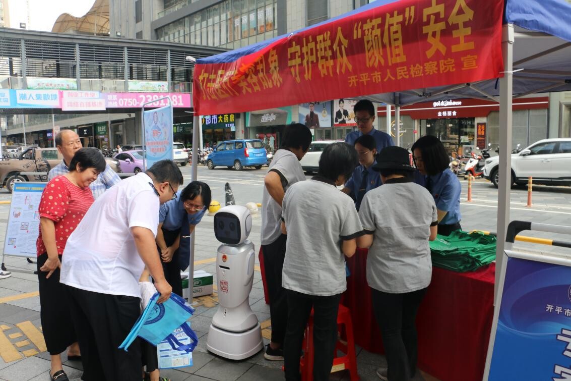 来源:开平市卫生监督所 2023年9月6日,市卫生健康局、市检察院、市卫生监督所联合开展主题为“非法医美零容忍,理性鉴别护容颜”医疗美容普法宣传活动,旨在宣传医疗美容相关法律法规知识,提升广大消费者医疗美容安全意识、维权意识,引导公众理性认知,切实维护消费者合法权益。 普法宣传现场,执法人员与普法机器人“平平”通过现场说法、现场咨询解答、游戏问答、案例讲解等群众喜闻乐见的形式,面对面向群众讲解了什么是生活美容和医疗美容,如何辨别生活美容和医疗美容及生活美容院非法开展医疗美容的危害及如何维权举报报等内容,多角度、全方位深入宣传非法医疗美容的危害,普及有关法律知识和医疗美容科普知识。 此次宣传活动共发放宣传手册200余份,现场解答群众问题40余个,以“零距离”服务群众的方式,让广大群众听得懂,记得牢,取得了良好的宣传效果。 下一步,市卫生监督所将继续加大力度,扩大打击非法医疗美容普法宣传的覆盖率和群众知晓率,引导广大群众远离非法“医美”,切实保障人民群众健康权益,传递美丽正能量。