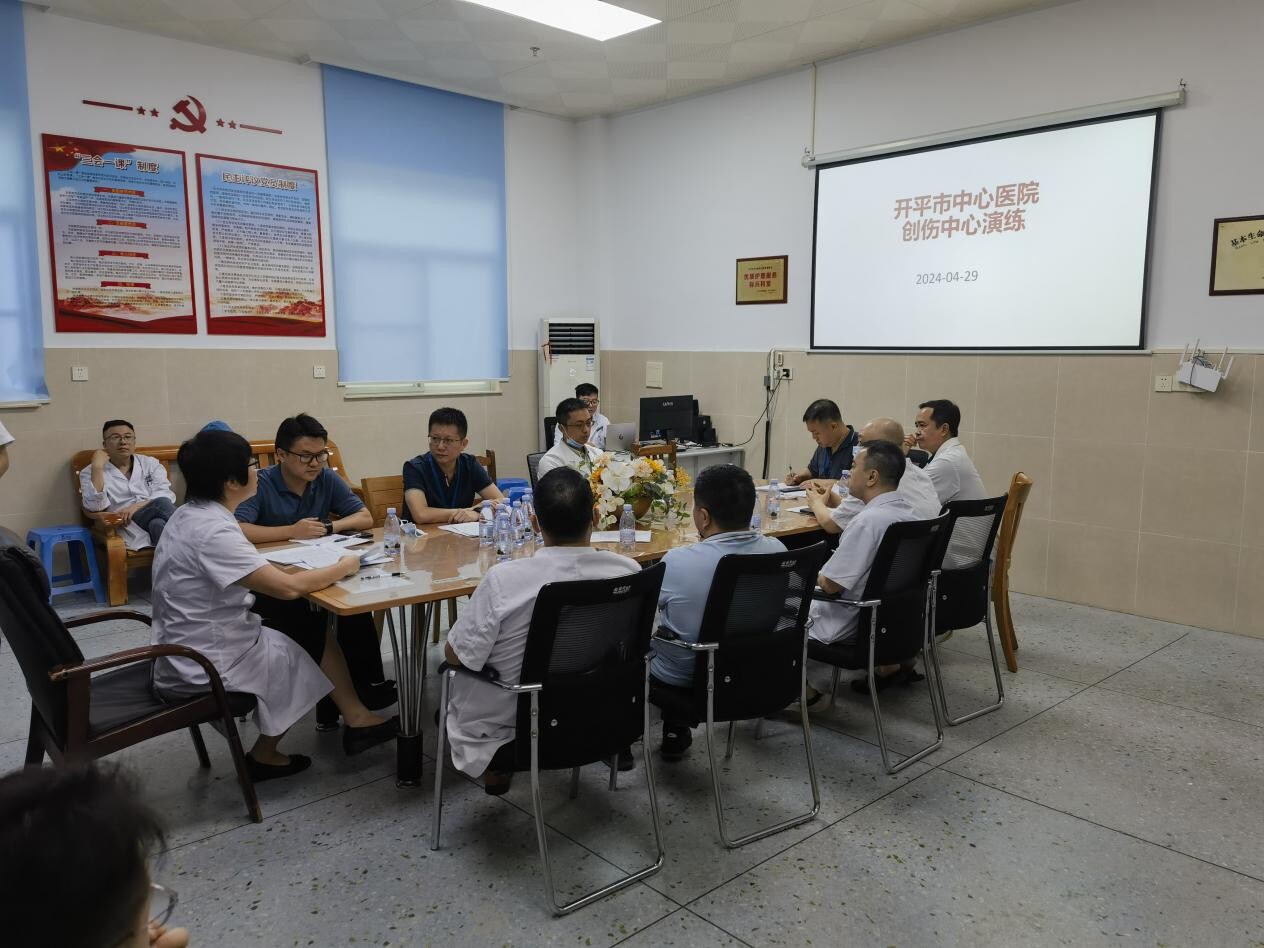 为强化道路交通事故院前急救和院内救治一体化建设,进一步规范创伤救治流程,保障医院急救绿色通道的畅通,提高医院各重点临床科室对道路交通事故严重创伤患者救治能力。4月29日下午,开平市卫生健康局组织开平市中心医院开展交通事故严重创伤患者紧急医学救援应急演练。演练由120急救指挥中心,中心医院医务科、急诊科、神经外科、胸外科、普外科、骨科、ICU、检验科、放射科、超声科、保卫科等相关科室参加了此次演练。 本次演练模拟某路段突发车祸,事故导致3人受伤。现场路人在发现情况后立即拨打120,120急救指挥中心立即拨通开平市中心医院急诊科电话,伴随着急诊科一阵急促的电话铃声响起,医务人员快速响应,根据受伤人数及伤情迅速出车抵达现场。急救车抵达现场后,医护人员立刻根据伤员病情作出判断,经出车医生现场确认一人当场死亡、一人病情危重、一人轻伤,出车医护人员依据病情轻重分别为伤者测量生命体征及应急处理,建立静脉通道、给氧、止血、心电监护等。随后,将2名伤者依次转运至医院开展进一步治疗。转运途中,医护人员密切监测伤者生命体征,并根据伤情联系创伤中心值班人员通知相关科室医生参与救治工作。 创伤中心值班人员接到急救车预警电话后,立即通知医院急诊科院内救治小组,要求院内救治小组到急诊抢救室提前等候抢救。急诊科接收病人后,迅速完成术前化验急送检及EFAST检查,初步考虑右侧血气胸、骨盆骨折、失血性休克。因患者血压不稳,持续性下降,骨科、介入科、普外科、放射科等专科现场会诊,拟行骨盆DSA介入治疗。在护送病人通过绿色通道到放射科行全身CT扫描后,发现存在肝破裂,立即联系手术室安排手术,术后送至ICU进一步治疗。患者在院领导准确调度指挥、各科医生护理人员密切配合、后勤保障人员安全转运下,所有模拟伤员均得到及时救治和妥善处理。 演练全流程结束后,中心医院医务科、急诊科及各重点临床科室主任对本次演练进行了总结复盘,针对演练中存在问题进行了梳理。中心医院副院长吴妙琼对演练进行了总结,针对演练中存在的细节问题提出整改措施,并强调要强化沟通与上报机制,加强各科室间的团队协作配合。 演练最后,市卫生健康局医政股负责人表示,中心医院此次演练具有一定的实战性,演练中指挥组、现场急救组、院内救治组、后勤保障组等各司其职,紧密配合,整个演练过程启动迅速、配合严密、行动高效认真、井然有序、分秒必争抢救病人。演练场景模拟逼真、参与抢救的科室覆盖广,真实检验了中心医院应对重大道路交通安全事故紧急医学救援的快速反应能力、现场协调作战能力、对重症创伤患者的应急处理和综合救治能力。
