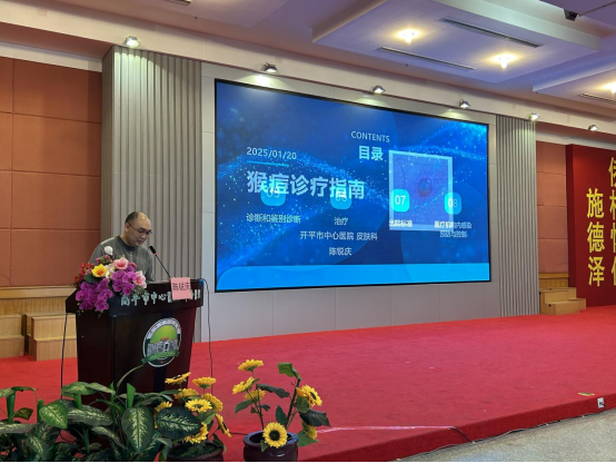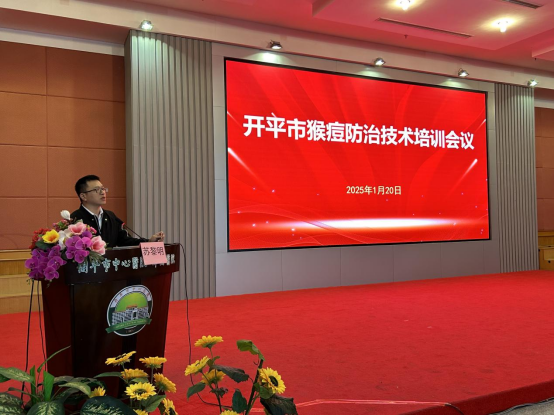 为进一步提高猴痘临床早期识别和发现能力,提升我市医疗卫生机构猴痘防治技术能力,开平市卫生健康局于2025年1月20日召开全市猴痘防治技术培训会议,全市各医疗机构、民营医院的分管领导及医务科、皮肤科等相关科室负责人50多人参加了本次培训。 开平市卫生健康局副局长苏黎明对我市猴痘防治工作进行全面部署,要求全市医疗机构建立猴痘症状监测机制,熟练掌握病例报告、流行病学调查、标本采集与实验室检测等相关技术流程,科学规范做好防治工作。 本次培训邀请了开平市中心医院皮肤科专家陈锐庆就猴痘的病原学、流行病学、临床症状与治疗等多方面进行了详尽授课,后续各卫生院、社区服务中心也将针对本辖区内所有卫生站开展相关培训,进一步夯实了全市各医疗机构相关科室的猴痘防治应急处置能力,强化了相关科室和人员对猴痘的预警监测能力,提高了全市医疗机构的猴痘防治和监测预警水平。