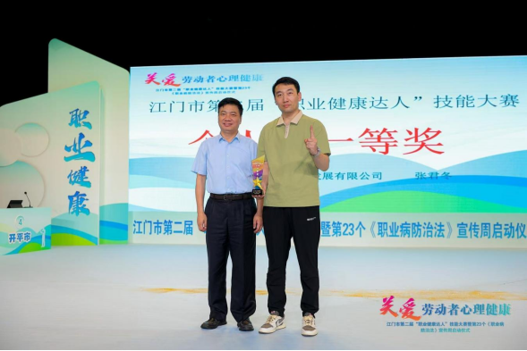 为全面提升职业健康工作质量和水平,落实职业病防治“十四五”规划,推动职业健康事业发展,助力“职业健康保护行动”。4月25日下午,江门市卫生健康局联合江门市总工会在江门市工人文化宫举办江门市第二届“职业健康达人”技能大赛暨第23个《职业病防治法》宣传启动仪式。 此次技能大赛设置了多个环节,涵盖职业健康理论知识测试,重点考查选手对职业健康法律法规、防护知识、健康素养等内容的掌握。操作技能比拼,如常见职业病危害个体防护用品穿戴、自救互救操作等实际操作。还有健康影响力能力展示,要求选手以情景演绎、科普演讲等形式,传播职业健康理念,展示推广健康工作方式的示范引领能力。 开平市卫生健康局高度重视此次比赛,赛前精心组织选拔参赛人员,积极开展针对性培训和排练。比赛现场,我市参赛队伍3名参赛队员精神饱满、沉着冷静,在各个环节中各展所能。理论知识测试环节,认真思考、精准作答;操作技能比拼中,规范熟练完成各项操作;健康影响力能力展示环节,创意十足,通过小品、模拟演练等生动方式科普职业健康知识。 经过激烈角逐,我市参赛队伍取得了优异成绩,斩获个人赛一等奖1名、二等奖 1名、优秀奖 1名;团体赛知识竞赛一等奖、技能展示一等奖,两项总分第一,荣获团体赛一等奖,尽显我市职业健康达人风采。 (开平市队表队荣获知识竞赛一等奖、技能展示一等奖、团体赛一等奖) 接下来,市卫生健康局将以此次比赛为契机,持续加强职业健康工作,推动用人单位落实主体责任,切实保障劳动者的职业健康权益,在全市营造更加浓厚的职业健康保护氛围。 (开平市代表队国电投(江门)能源发展有限公司张君冬荣获个人赛一等奖) (开平市代表队国电投(江门)能源发展有限公司蒋飞翔荣获个人赛二等奖) (开平市代表队国电投(江门)能源发展有限公司祁菲荣获个人赛优秀奖)