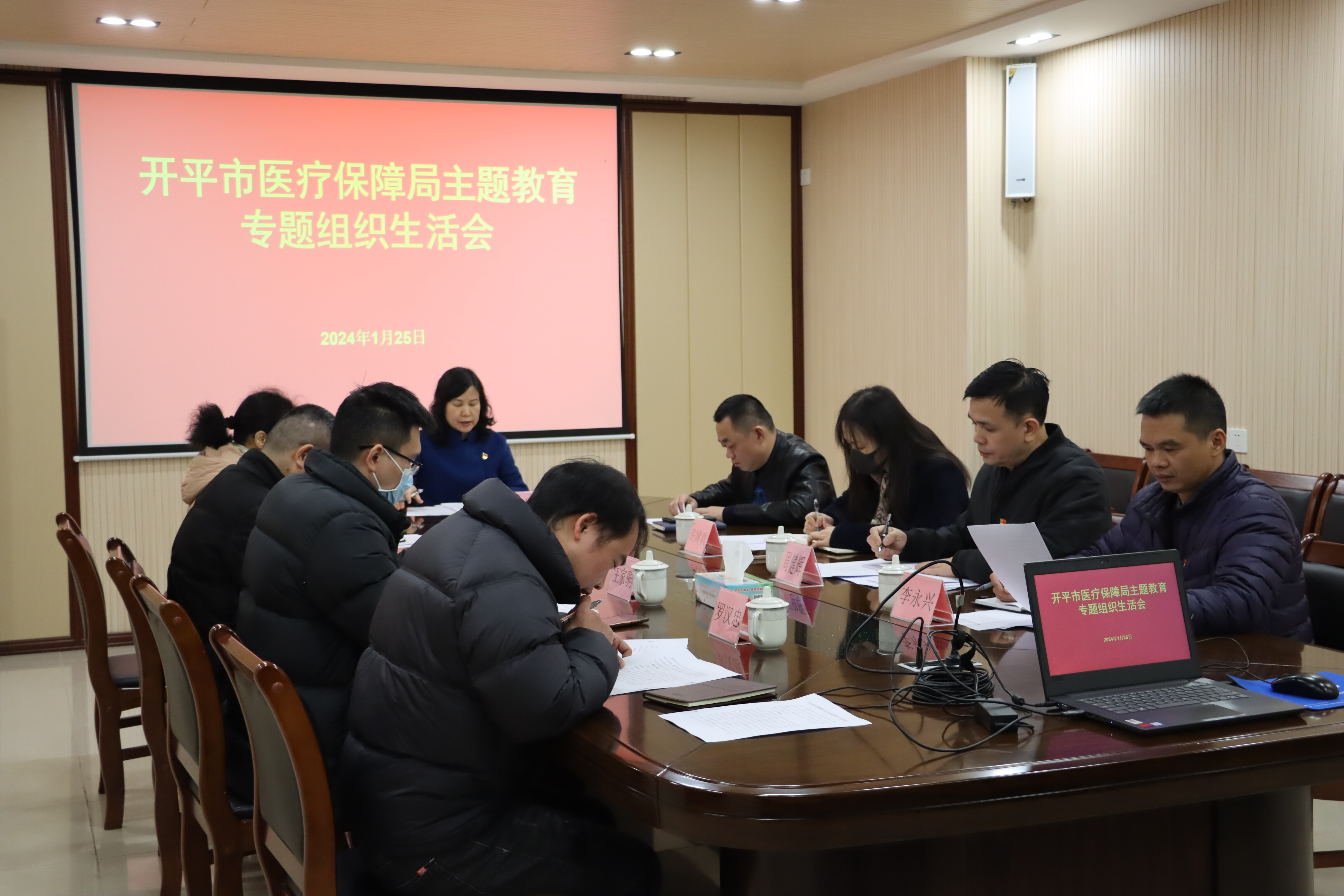 1月25日下午,开平市医疗保障局党支部召开2023年度专题组织生活会和民主评议党员大会,会议由党支部书记庄冬梅主持,全体党员参加会议。