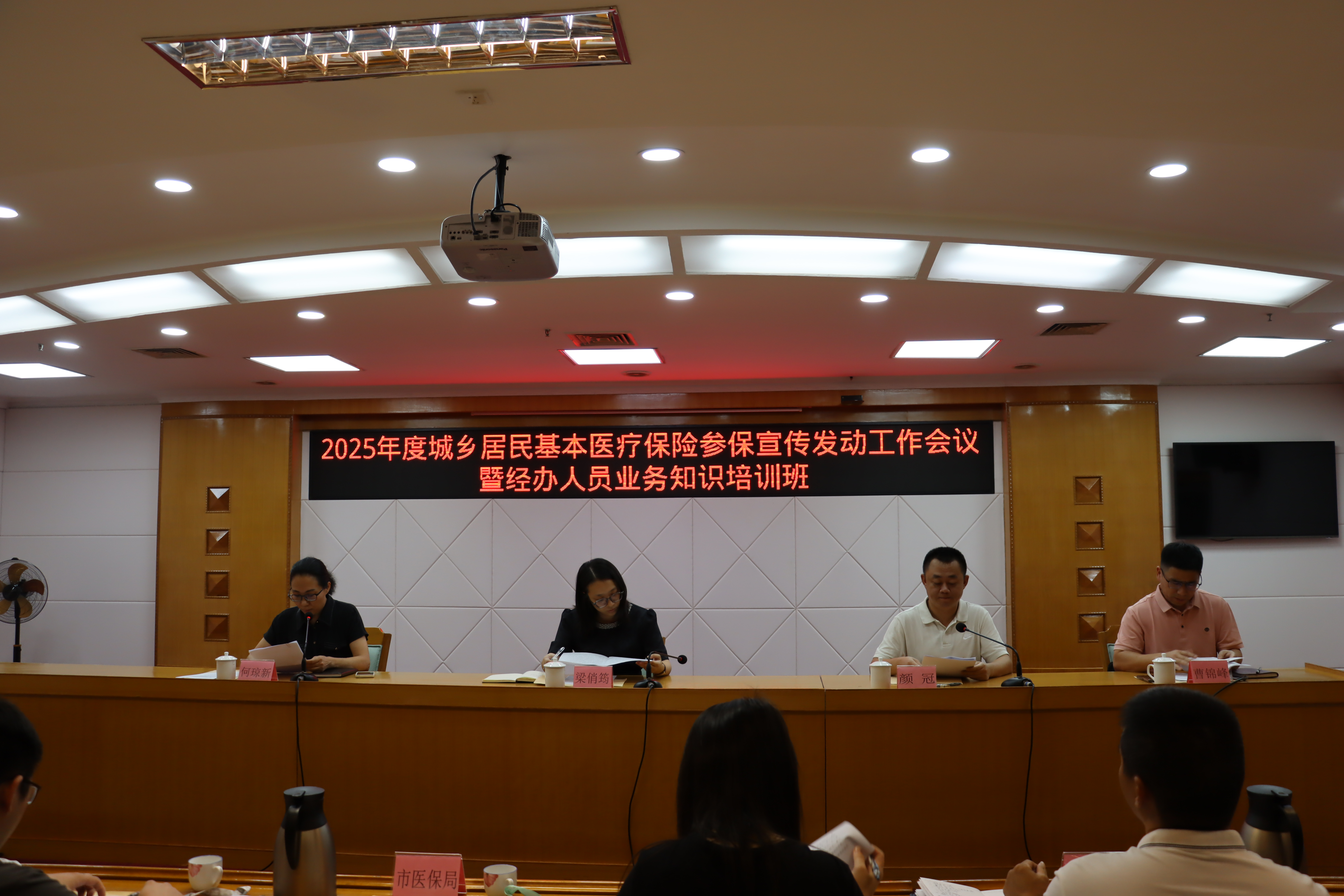 为进一步做好我市2025年度城乡居民基本医疗保险参保缴费工作,10月21日下午,市医保局组织召开2025年度城乡居民基本医疗保险参保宣传发动工作会议暨经办人员业务知识培训班。市人民政府副市长梁俏筠出席会议并讲话,各镇(街)、翠山湖管委会和有关部门分管领导及经办人员,“邑康保”有关负责人共70余人参加会议。