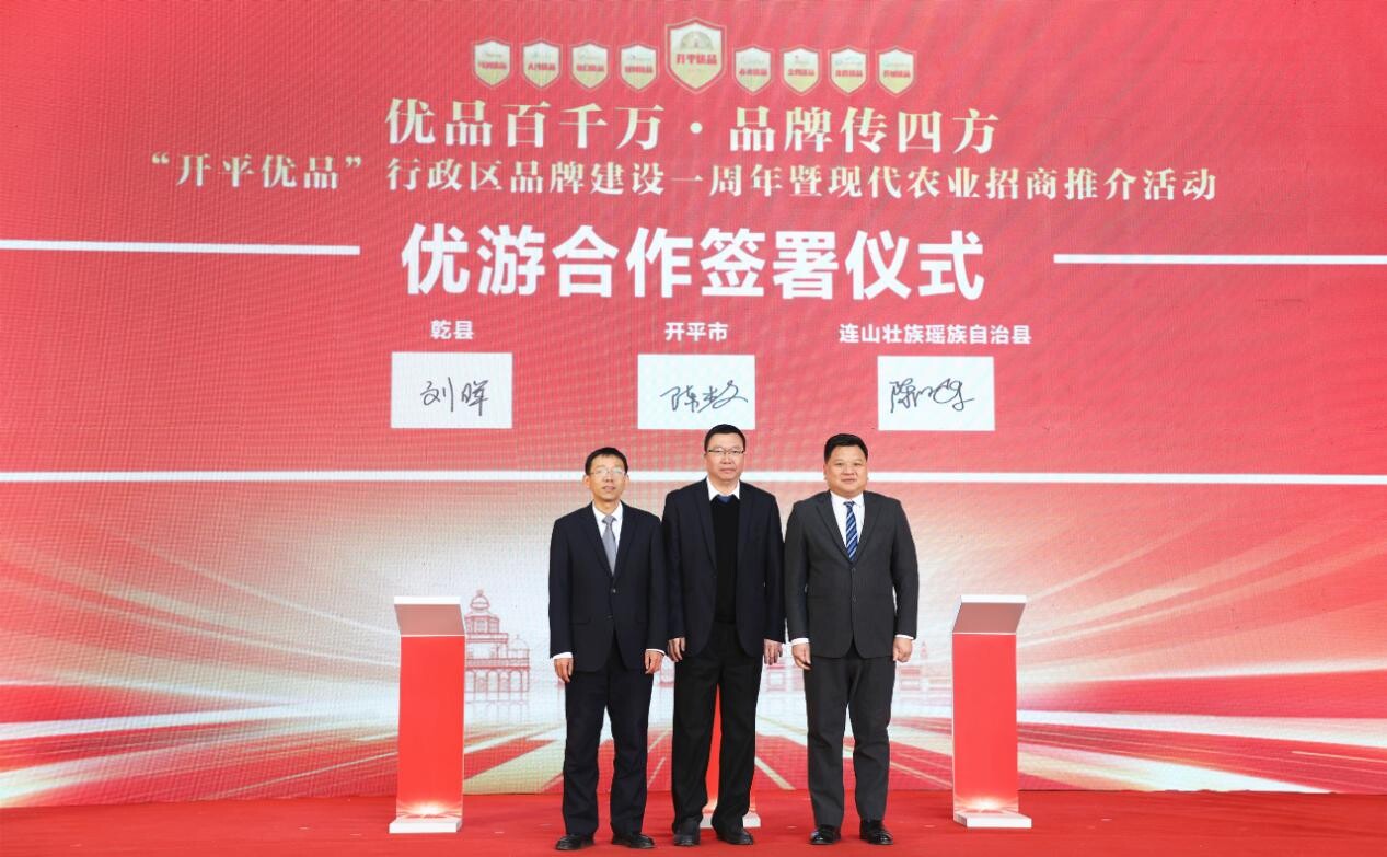 “走进来”。活动中,开平市与陕西省乾县、广东省连山壮族瑶族自治县签署了“优游”合作协议,再度拓展“优游”朋友圈。未来,开平市将与两地政府携手,促进文旅产业行政区间的融通共赢,携手唱响文旅发展“协奏曲”。 在开平优品、蚬冈优品联合携龙旅游推出的开平优品研学游之“携龙优游”、蚬冈侨心游之“携龙优游”首发仪式上,象征研学游、侨心游的旗帜被郑重地交到了携龙集团代表手上,双方将以此次合作为契机,共绘品牌发展新蓝图、谱写文旅合作新篇章。 当天上午,2023-2024年度“设计激活世遗”——开平优品国际文创大赛也正式启动。“设计激活世遗”国际文创大赛自2020年起已成功举办三届,吸引众多来自海内外国家和地区的设计师在此平台上交流、切磋和成长。本届大赛将持续深挖世遗价值,同时结合“开平优品”等核心内容,将文化元素与实用功能有机结合,为侨乡文化保护发展与传承利用聚合力量,助推开平经济社会高质量发展。 开平市委副书记、市长陈小曼在致辞中表示,开平市坚定地把行政区品牌建设作为落实“百千万工程”、做好“土特产”文章的重要实践,积极探索政府主导区域品牌建设的新模式,经济社会生态效益显著。接下来,开平市将继续激活创新动力、推进行政区品牌建设迈上新台阶、打开新局面,一要坚持强龙头、补链条,推动全产业链集聚式发展;二要坚持强平台、促规模,持续构建“行政区品牌+基地+产业+企业+匠人”的发展新模式;三要坚持兴业态、树品牌,进一步拓展行政区品牌建设的广度和深度,形成“一产接二连三”的互动型、融合型发展模式,推动乡村振兴真正落地落实,为实现开平经济高质量发展提供有力支撑。 路虽远行则将至,事虽难做则必成。一周年对于“开平优品”而言是一个重要的节点、更是一个新的起点,开平市委、市政府将以此为契机,充分调动各级各部门、市场主体、全体市民和华人华侨等社会各方力量参与“开平优品”行政区品牌建设的积极性、主动性和创造性,进一步挖掘行政区资源潜力、进一步激发经济发展活力,以高质量行政区品牌建设赋能经济社会高质量发展。