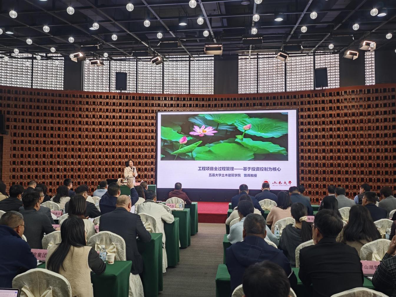 在上午的培训课上,授课老师五邑大学土木建筑学院曾晖教授以《工程项目全过程管理——基于投资控制为核心》为题作专题授课,从工程项目的项目组织、成本控制、进度控制、投资估算、财务评价等方面剖析了工程项目的全过程造价管理,重点讲解了建设项目的投资构成及融资模式,有助于各企业提高工程项目全过程管理水平。