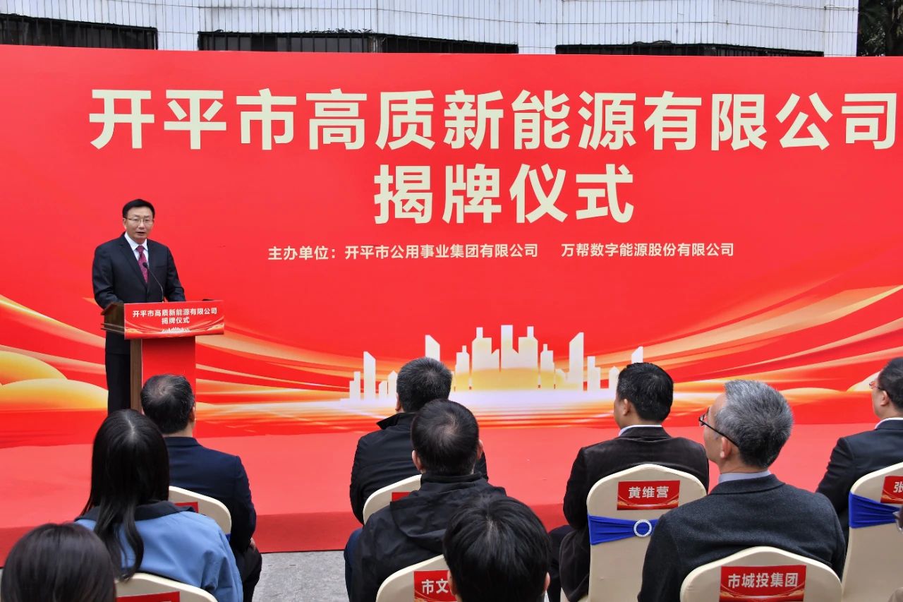 2月11日上午,开平市高质新能源有限公司举行揭牌仪式,进一步深化和完善综合能源体系着力推动新能源及可再生能源的开发与应用,推进开平市能源产业持续、有序发展。市领导张伟赞出席活动。 开平市高质新能源有限公司由开平市公用事业集团有限公司属下子公司开平市公用能源管理有限公司与万帮集团属下子公司广州市星星充电设备有限公司合资成立,旨在通过资源整合、技术创新和市场拓展,打造一个在行业内具有强劲竞争力的全新企业,共同推动开平市新能源产业的创新发展。 揭牌仪式上,开平市公用事业集团有限公司党总支书记、董事长张向宁对高质新能源公司的正式启航表以最衷心的祝贺,并强调,在当前绿色低碳转型的关键时期,新能源产业正以前所未有的速度蓬勃发展。作为地方能源基础设施建设的“主力军”,市公用事业集团将始终以“立足开平