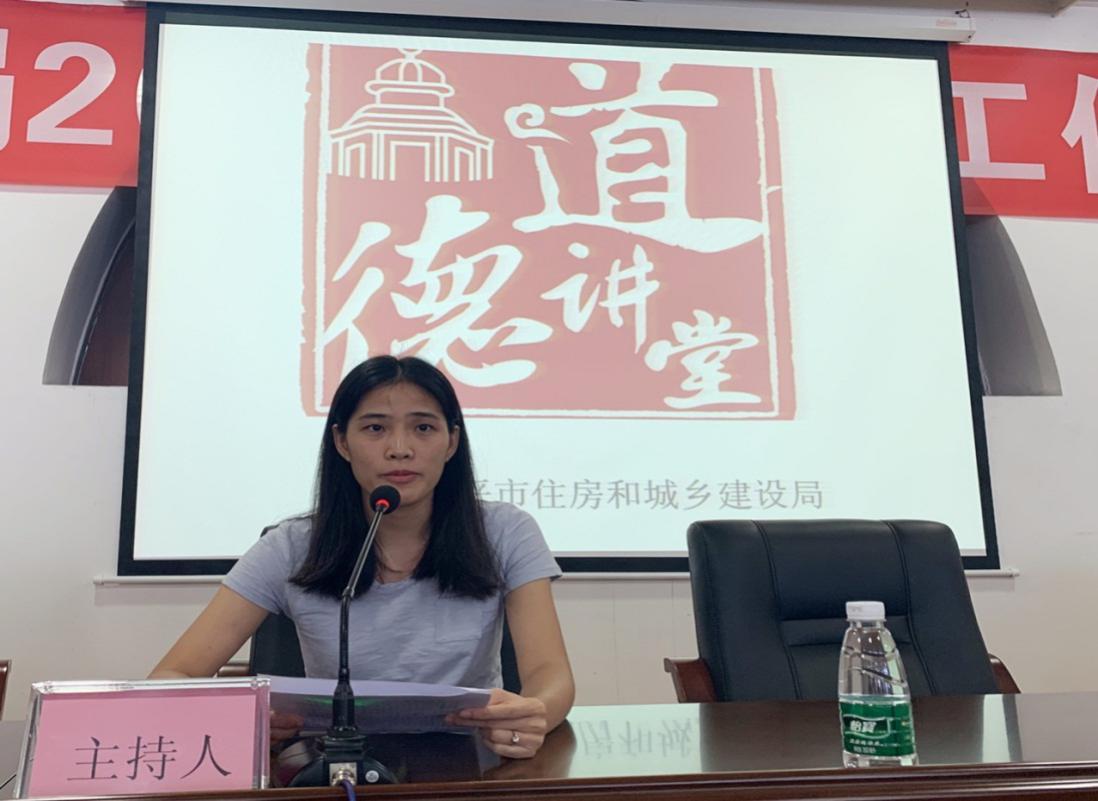 近日,市住建局组织全体干部职工开展以 “不忘初心、牢记使命” 为主题的道德讲堂学习,通过“自我反省、唱歌曲、学模范、诵经典、发善心、敬道德、送吉祥”等七个环节,引导全体干部职工感悟榜样的力量,强化道德修养,守初心、担使命。住建局党组高度重视,主要领导胡震带头参加了本次教育。