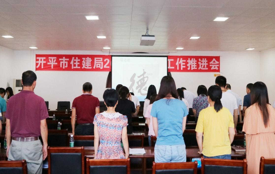 近日,市住建局组织全体干部职工开展以 “不忘初心、牢记使命” 为主题的道德讲堂学习,通过“自我反省、唱歌曲、学模范、诵经典、发善心、敬道德、送吉祥”等七个环节,引导全体干部职工感悟榜样的力量,强化道德修养,守初心、担使命。住建局党组高度重视,主要领导胡震带头参加了本次教育。