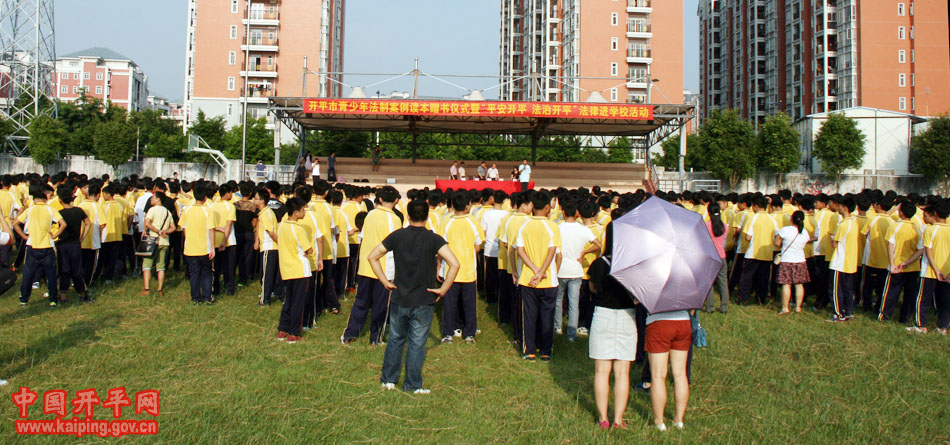 为深入开展“平安开平 法治开平”法律进学校活动,9月16日下午,我市在世界谭氏中学举行青少年法制案例读本赠书仪式。市司法局、教育局、普法办、全市中心学校政工员、谭氏中学师生等2000多人参加了活动。