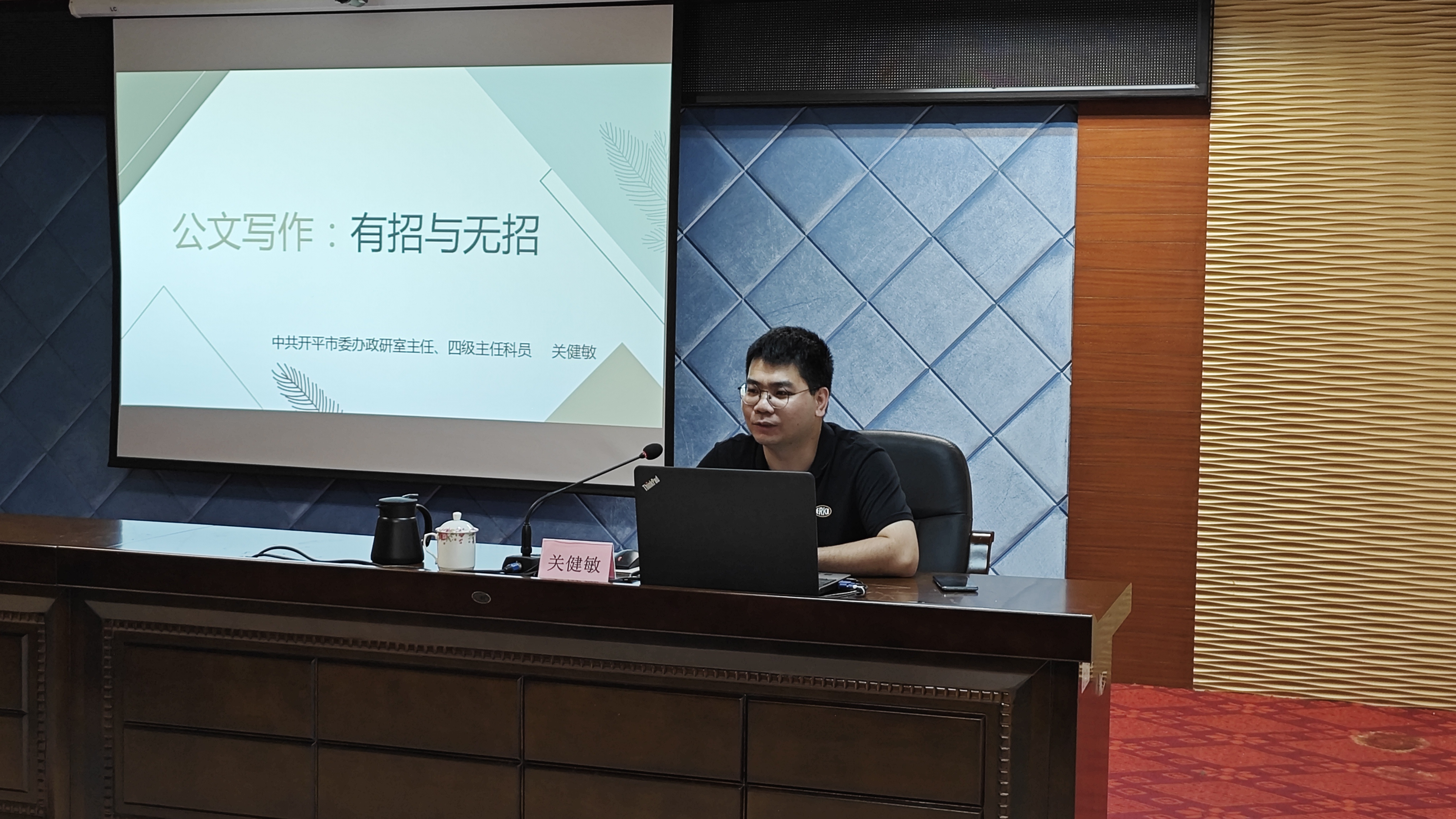 为进一步提升干部职工业务水平和综合能力,着力打造一支素质高、业务精、能力强的干部队伍,6月27日下午,开平市人社局举办了第二季度“每季一讲”活动,邀请市委办政研室主任、四级主任科员关健敏同志作公文写作专题授课,局两位青年干部结合业务工作作经验分享。局全体干部职工参加本次活动。
