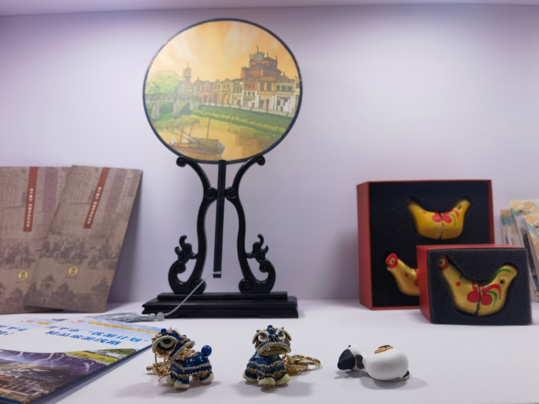 开平市喜一堂文创产品、镇濠泥鸡、百年狮鼓等文创展品陈列其中,制作精美的展品吸引了许多人在展台前驻足围观,开平优品、青枫侨心粽、大沙茶等开平特色产品备受青睐,展示了开平农文旅融合发展的新面貌。