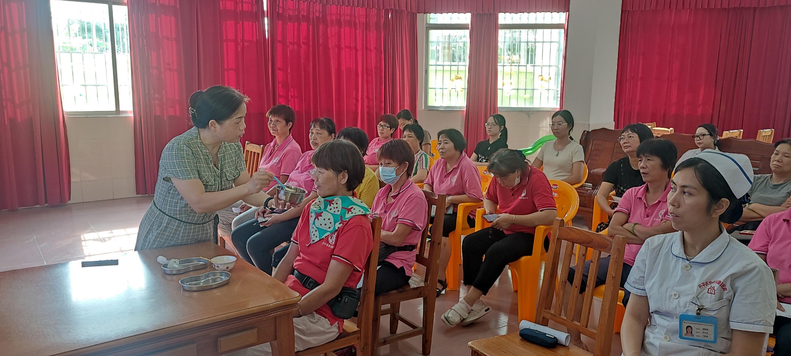 为提升敬老院入住老年人膳食营养水平,帮助养老机构和养老护理从业人员更好地服务老年人健康养老,以邀请资深教师“送教上门”的方式,针对开平市福利院、开平市东华颐养院等养老机构的老年人健康情况,开展“一对一”营养膳食培训。培训涵盖老年人营养需求、常见营养问题及预防措施,针对老年人常见疾病(如高血压、糖尿病、骨质疏松等)进行疾病特异性营养指导膳食搭配等内容。资深教师梁老师建议养老护理员根据老年人的营养状况进行适当的食谱调整,并教授他们照护老年人用餐时的实用技巧。