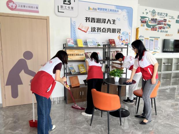 焕新职工书屋,共筑书香家园。8月20日,青年党员来到S275蚬冈服务区便民阅读点进行书籍整理,有的负责分类整理书籍,有的擦拭书架书桌,清除积尘,还有的负责检查书籍完好度,将破损书籍登记存档,以便后续修补,青年党员分工协作又互相配合,用实际行动为服务区的书香空间“焕新颜”。
