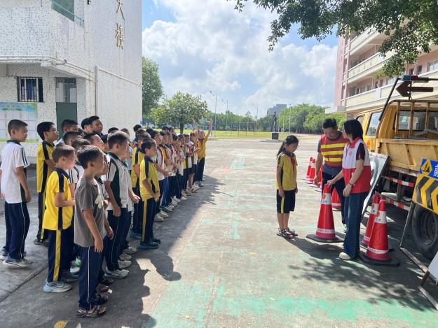 公路知识进校园,筑牢成长安全线。课堂上,开平公路事务中心志愿者化身“老师”,向师生讲解公路沿线附属设施、标志标牌、相关公路法律法规等知识。操场上,养护车辆和公路养护作业工具、标识等整齐摆放,公路志愿者宣传爱路护路知识,让孩子们更加了解公路日常养护中的安全作业知识,提高自我防护意识。整个活动过程参与率高、互动性强、气氛活跃,同学们还获得了印有《公路法》宣传的小扇子。