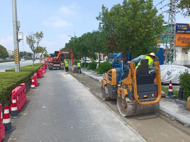 省道S273线路肩整治工程施工中。