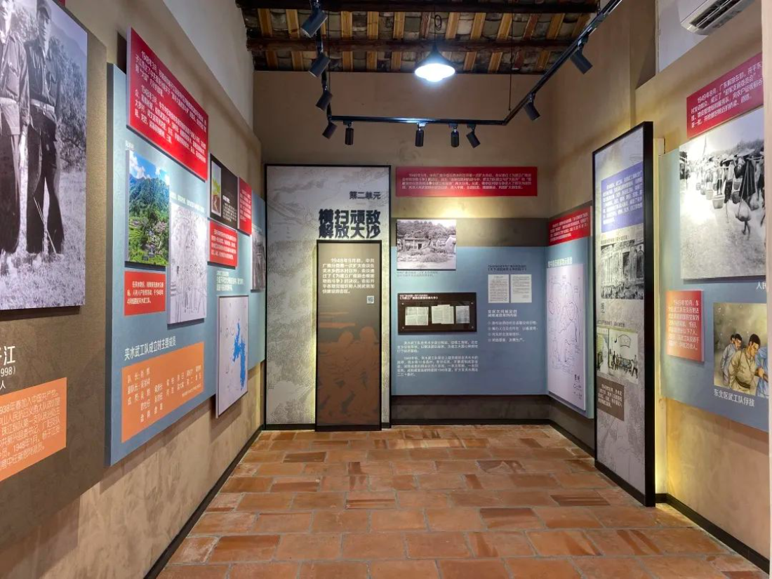 馆内分“播撒火种、开辟西水抗日游击根据地”“重新集结、人民武装尖鹤扬威”“大搞武装、决战尖鹤迎解放”等三个部分,共4个展区,主要讲述了在波澜壮阔的人民解放战争时期,大沙人民在中国共产党的带领下,为建立以天露山为中心的粤中游击根据地倾尽所有,为粤中人民的解放事业做出不可磨灭的贡献。