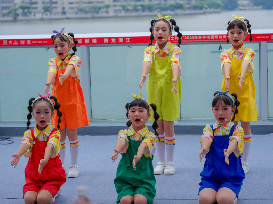 赛事期间,精彩纷呈的配套表演也为节日增添了浓厚的文化韵味。滑翔伞在碧空划过潇洒的弧线,传统龙舟表演赛展现了古老龙舟的别样风采;马冈中心小学学生们带来的《锦绣狮武》虎虎生威,舞出了少年儿童的朝气;梁金山小学倾情演绎的粤曲《侨乡童韵》婉转动听,将侨乡故事融入曲韵悠扬。这些文化展示,既是开平深厚文化底蕴的体现,也成为了市民和游客共享的文化大餐。