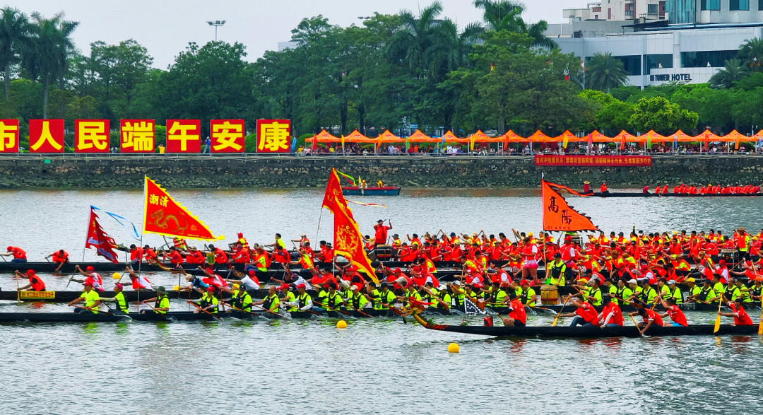 粽叶飘香的端午佳节,因龙舟赛的点缀更添韵味。比赛期间,放眼望去,潭江两岸人潮涌动,笑语喧天。高亢的助威声、响彻云霄的锣鼓声交织在一起,共同演奏出端午最动人的交响乐。