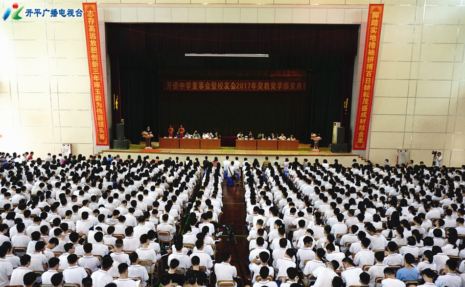 8月4日上午,开平市开侨中学董事会、校友会举行2017年奖教奖学颁奖典礼,奖励在今年高考中取得优异成绩的师生。