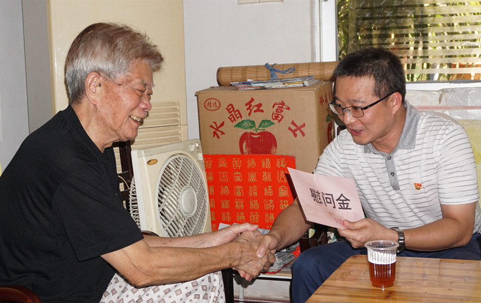 随后,陈军凯一行来到退休干部郑茂宁家中。今年84岁的郑茂宁同志从市人大常委会副主任的岗位上退休至今已24年,他现在虽然有点耳背,但每天还坚持买菜做饭。陈军凯叮嘱他要多注意身体,好好享受晚年生活,并送上慰问金和慰问品。