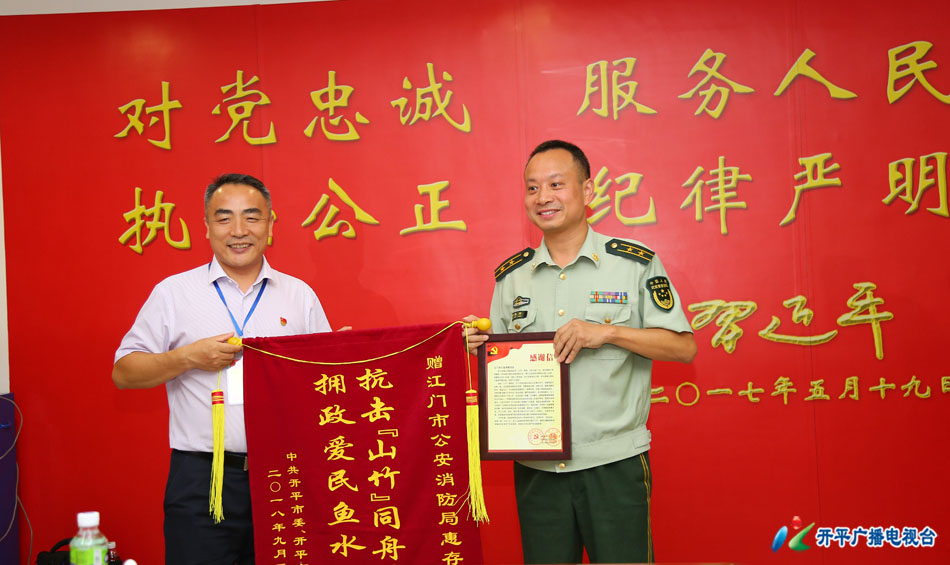 9月25日下午,开平市市长邝积康受开平市委书记庞正华委托,带队到江门市开展答谢活动,感谢江门市公安消防支队、武警江门支队在开平市抗击强台风“山竹”工作中的大力支持和突出贡献。开平市领导张星杰、梁民跃、陈军凯、陈勇等参加活动。