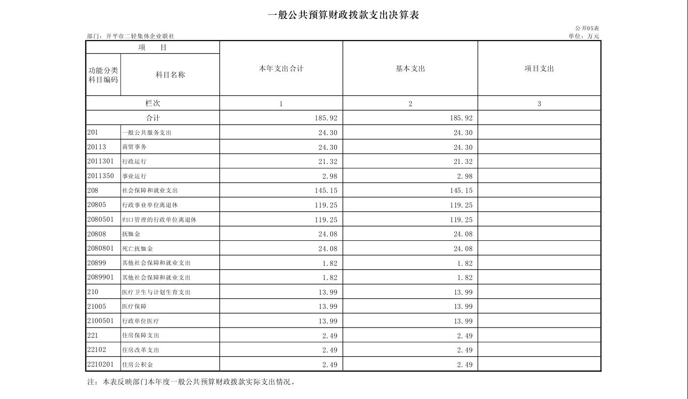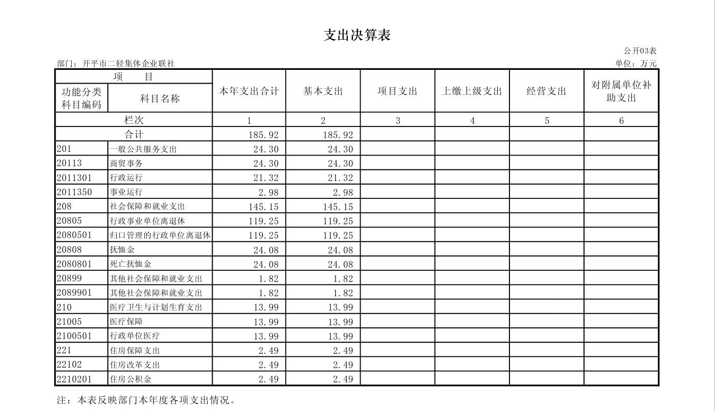 开平市二轻集体企业联社2015年度支出合计185.92万元。具体如下;