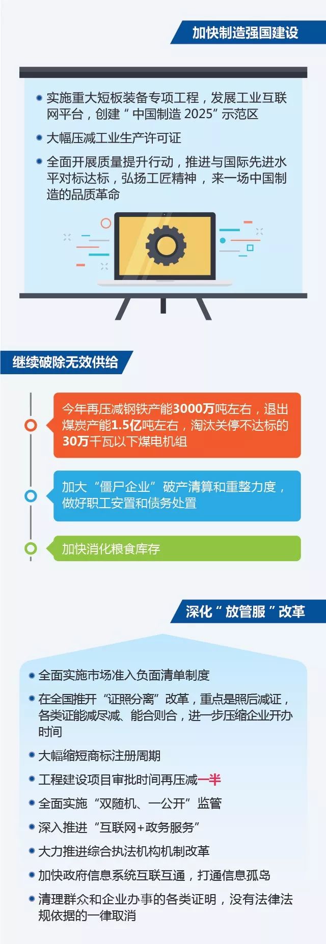 去产能:再压减钢铁产能3000万吨左右,退出煤炭产能1.5亿吨左右。