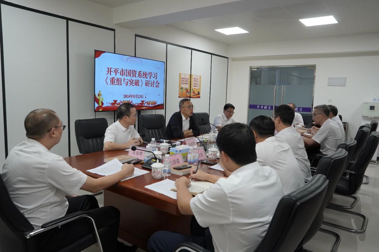 8月23日下午,开平市召开国资系统学习《重组与突破》研讨会,共同探讨新时代背景下国资国企改革和发展的新内涵、新路径和新方法,进一步推动全市国资国企改革向纵深发展,为开平经济社会高质量发展作出新的更大贡献。开平市委书记余中华,市领导余文锋、张伟赞参加会议。