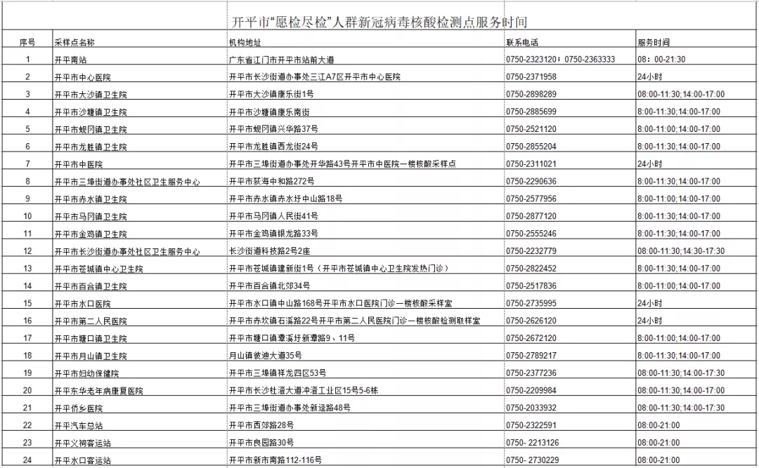 四、开平市设置发热门诊(发热诊室)医疗机构信息