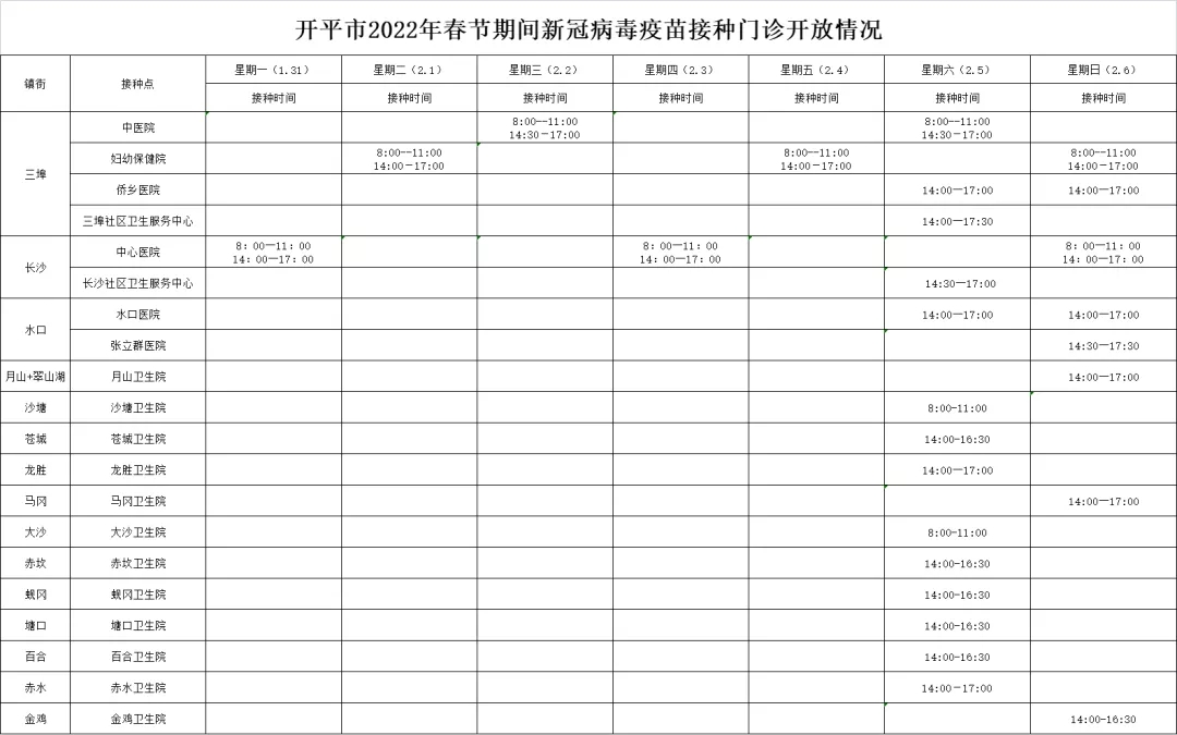 六、春节期间哪些新冠疫苗接种点开放?