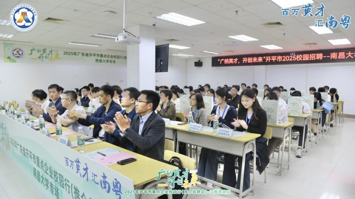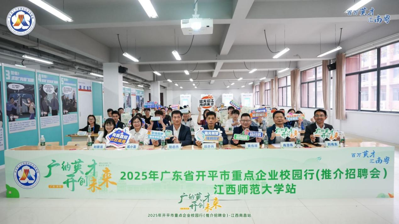 为深入贯彻落实广东省“百万英才汇南粤”行动计划,近日,开平市组织市内10家重点企事业单位赴江西省南昌大学、南昌工程学院、江西师范大学开展“广纳英才 开创未来” ——2025年开平市重点企业校园行推介招聘会,深入开展校地合作,吸引优秀高校毕业生到开平就业创业。