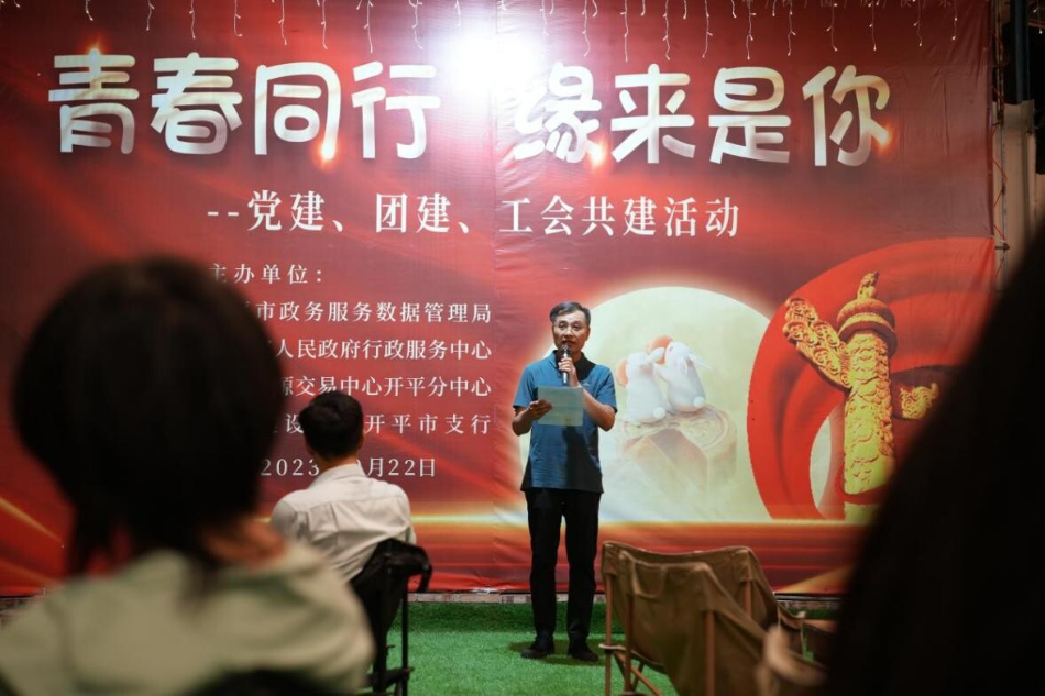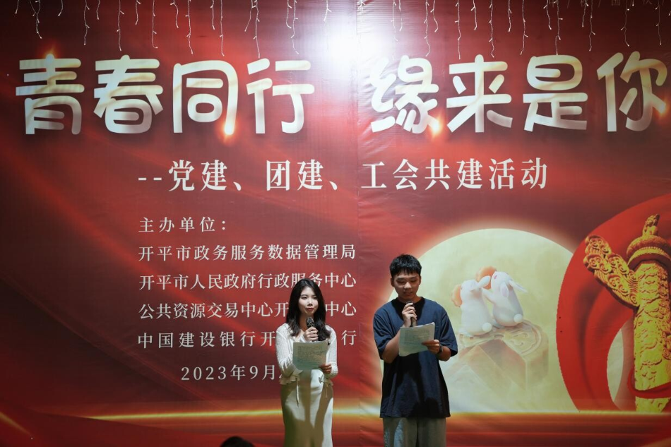 借中秋国庆即将到来之际,为拓宽单身青年的沟通交流渠道,搭建良好的交流互动平台,9月22日,开平市政务服务数据管理局、开平市人民政府行政服务中心、江门市公共资源交易中心开平分中心与中国建设银行开平市支行举办以“青春同行,缘来是你”为主题的党建、团建、工会共建活动。 活动中,中国建设银行开平市支行行长助理劳嘉荣、市行政服务中心副主任周建宁分别进行了发言。一是希望通过共建活动平台、进一步加强政银青年们之间的互动交流,增进情谊,提高党团组织、工会的凝聚力和战斗力。二是希望通过本次活动,青年们可以在活跃轻松的氛围中洋溢风采,连心共建,共同为我市争创国家乡村振兴示范县和省“百千万工程”示范县,推动我市高质量发展作出积极贡献。 活动现场,青年单身职工们通过“情谊‘蹲’升”、“考你反应”小游戏、才艺表演以及“寻‘Ta’合影”等小任务进行互动,让彼此由陌生变得熟悉,逐渐敞开心扉,也让单身青年在游戏中寻找心仪对象,在欢声笑语中寻觅幸福。 此次交友活动为广大单身青年提供了展示自我、放松身心、增进友谊的平台,下一步,开平市政务服务数据管理局将持续聚焦青年人才实际需求,组织开展技能培训、阅读交流等系列活动,不断增强青年干部职工的获得感、归属感。