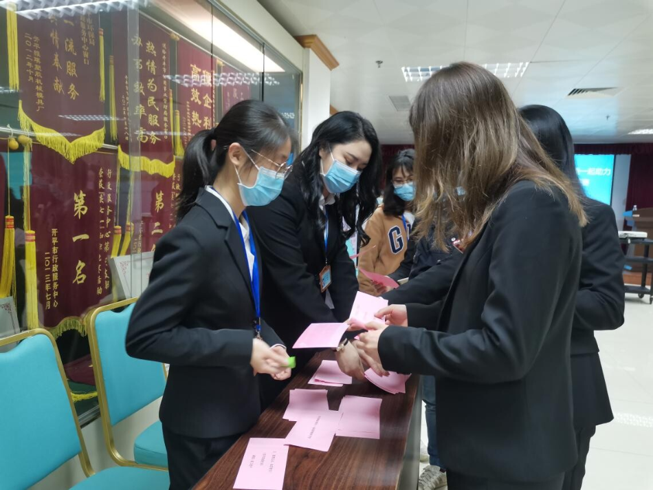 为进一步加强政银企合作交流,增强各方党员干部服务发展的责任意识,凝聚基层党建工作的强大合力,以党建转作风、提效率、优服务,3月8日上午,开平市政务服务数据管理局、开平市人民政府行政服务中心、江门市公共资源交易中心开平分中心、中国邮政储蓄银行开平市支行、融创潭江首府联合开展以“政银企连心共建聚合力互促发展”为主题的第二届致敬“最美服务人”暨党建、团建、巾帼文明共建活动。 当天上午,政银企三方进行了活动签约仪式,以联建为引领全面推进下一步合作战略部署,创新政银企合作模式。仪式上,市政数局党组书记、局长龚伟强,中国邮政储蓄银行开平市支行党支部书记、行长张雪飞,融创潭江首府城市总经理刘秀分别作出了共建发言,为今后三方党建、团建、巾帼文明共建工作奠定了坚实基础。 随后,由融创潭江首府开展礼仪授课,针对服务礼仪动作、规范作出了详细讲解及现场示范,进一步提升窗口礼仪服务质量。最后,三方围绕我市文明城市创建、疫情防控等重点工作,设置了“巾帼文明”“创建文明城市”“青年文明号”“三八妇女节”“银企专区”等七大活动主题专区,联合开展了礼仪拍摄、创建文明城市专题问答、防疫猜谜等精彩活动。参加人员在轻松活跃的活动氛围中,进一步开拓思维、提升技能,激发拼搏、进取精神,施展才华、洋溢风采。 接下来,政银企三方将以“推动发展、服务群众、凝聚人心、促进和谐”为目标,不断加强党建、团建、巾帼文明共建,围绕“我为群众办实事”“企业服务年”等工作部署,通过共建活动平台、分享工作资源、交流工作经验等措施,实现政银企服务交流,着力提升服务质量,切实将“为群众办实事”落到实处,做好企业、群众的服务工作。