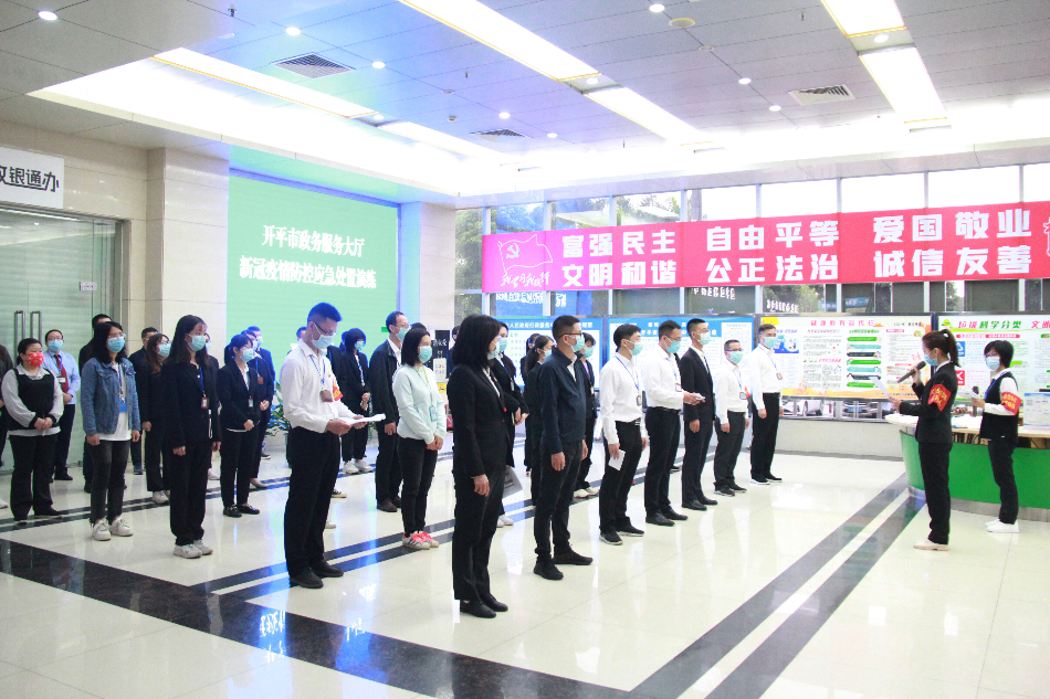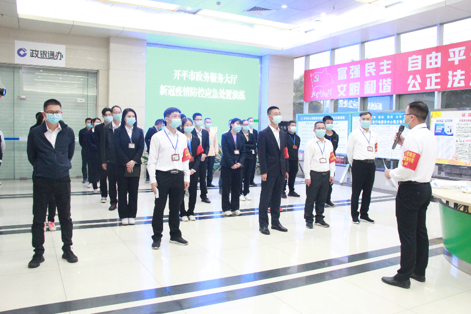 为进一步提高疫情应急处理能力,规范和强化疫情防控管理工作,4月18日下午,市政数局开展疫情防控处置现场演练。局疫情应急处置工作领导小组、应急处置各工作组以及部分干部职工参加并观摩了应急处置演练。 应急演练既是“演练”,也是“实战”。本次演练按照《开平市新冠肺炎本地疫情应急处置工作方案》的要求,立足政务大厅疫情防控前期应急处置阶段,模拟了启动应急预案、大厅封控管理、转移密切人员、现场环境消杀等关键环节,通过“以练为战、以战促训”,补漏洞、强弱项,全面提高我局疫情防控应急处置能力。 启动应急预案 模拟接到市疾控中心的紧急通知,市政务服务大厅内有新冠肺炎疑似病例(密接者)。局疫情应急处置工作领导小组会商后决定启动疫情防控应急处置预案,成立临时指挥部,通知各应急小组立即分工行动。 大厅封控管理 收到启动应急预案的命令后,后勤保障组第一时间联系物业保障组对大楼现场封控管理,禁止任何人进出。信息联络组同时利用大厅广播要求所有人员原地保持不动,配合工作人员的指引。 转移密切人员 物业保障组安排工作人员着防护服、戴口罩和护目镜等防护设备,护送疑似病例人员到临时隔离安置点,进行相关身份信息登记,并告知该群众留在留观室休息,不得到处走动,不要接触其他人,等待疾控机构前来完成密接人员的检查和转移。 现场维稳服务 服务保障和咨询组通知大厅内各个办事区域小组长组织工作人员进行现场人员管控,维持现场秩序,安抚群众情绪,做好疫情措施解释工作,引导群众不恐慌、不猜测、不传谣,并配合后勤组保障好群众的饮食。 演练结束后,市政数局党组书记、局长、应急处置工作领导小组组长龚伟强同志对这次演练进行了总结和点评,肯定了这次演练工作准备充分、情景设置合理,有效提升防控应急处置工作能力,是一次既实用又必要的演练,但同时也指出存在不足。他强调,要以此为契机,举一反三,推动疫情防控应急处置各个环节更加规范高效,落实落细疫情常态化防控措施。 通过此次疫情防控演练活动,检验了我局疫情应急处置预案的可操作性、适用性,进一步提升我局疫情防控应急处置快速响应能力、应急指挥能力、沟通协同能力、规范处置能力四个能力。
