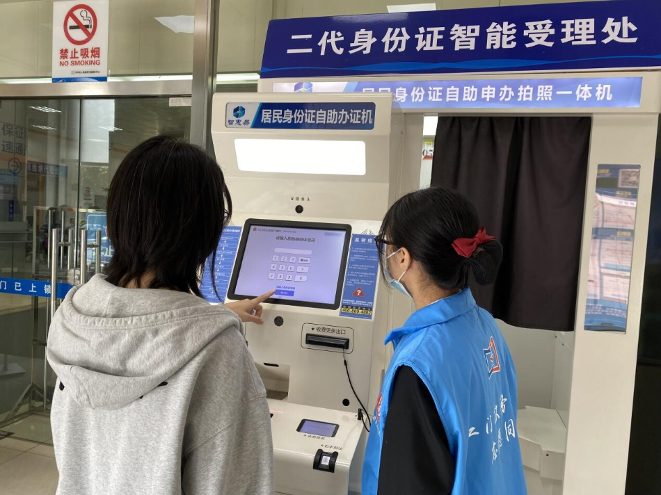 工作人员指导活动现场办事群众自助办证
