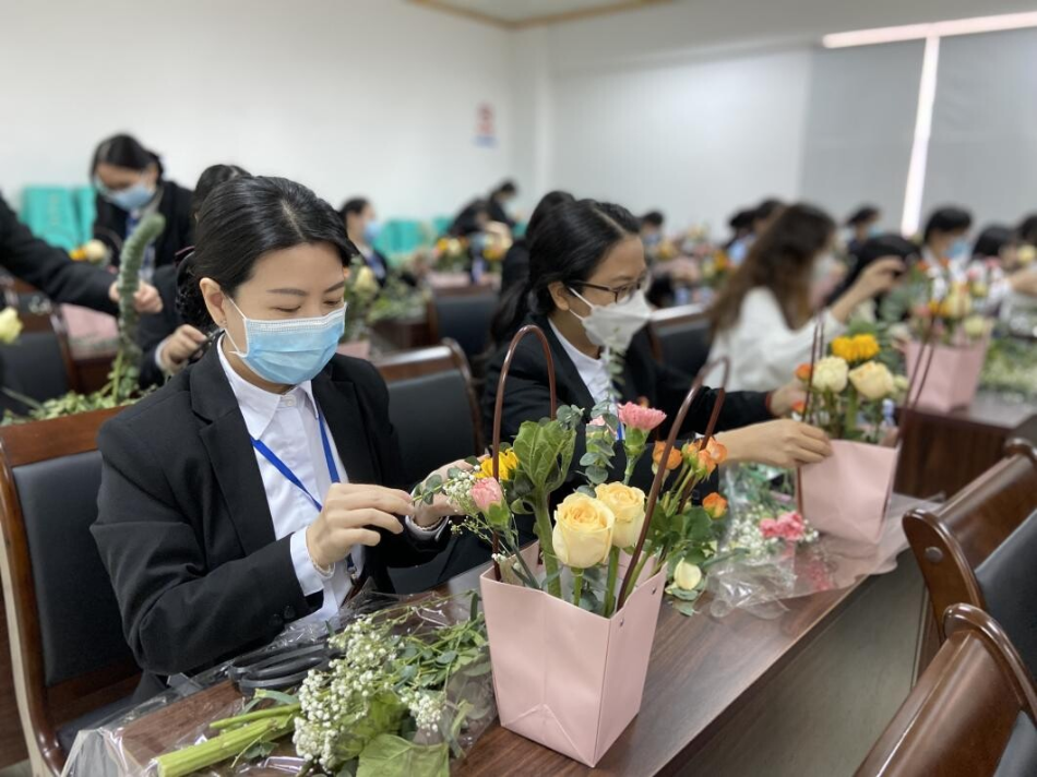 最后,在插花沙龙活动上,花艺老师介绍了鲜花的美好寓意以及艺术插花技巧,现场开展插花指导。活动现场花香四溢,留下芳华,营造了春日庆佳节的良好氛围。